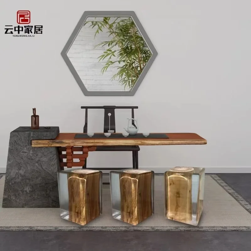 Cristal Transparente Epoxy Pier Stool, Escultura Chair Edge, chá ornamento