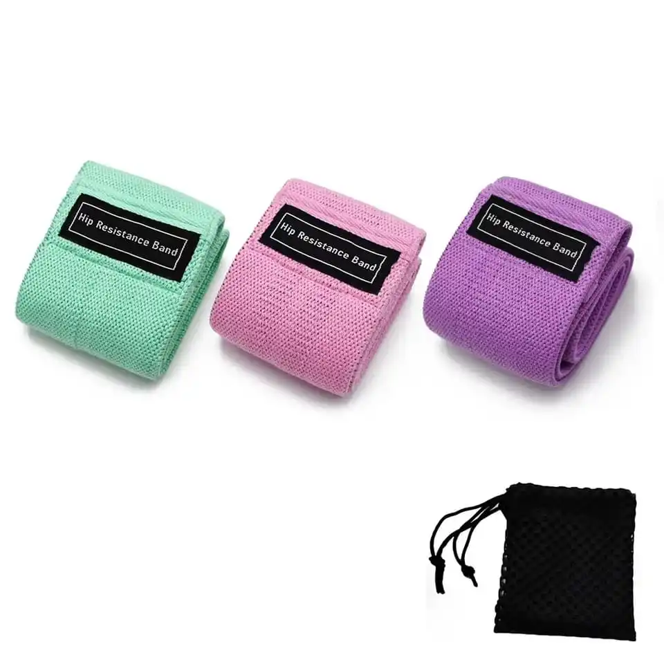As faixas elásticas de exercício hip bands são diferentes das mini bands de borracha pois são feitas de tecido macio que não agride sua pele e não escorregará durante a prática do exercício, sendo assim o seu ajuste é desnecessário durante o treino de levantamento ou agachamento.