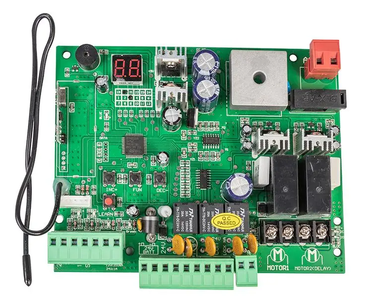 1. Easy operation for Led Digital display 2. Single-button cycling working. 3. Time protection to ensure the safety of the motor. 4. Auto-closing delay. 5. Terminals for loop detector, photocell,card-reader, etc. 6. Choose to operate single leaves or double leaves separately. 7. Custom rolling code systems make the systems more secure. 8. Available to connect the 12V DC backup battery.