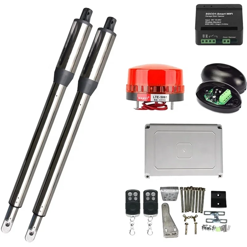 The pictures are for reference only. When you purchase the door opener set, all other accessories such as solar panels, batteries, warning lights, sensors, etc. need to be purchased separately. Please contact us to inquire about the relevant prices.