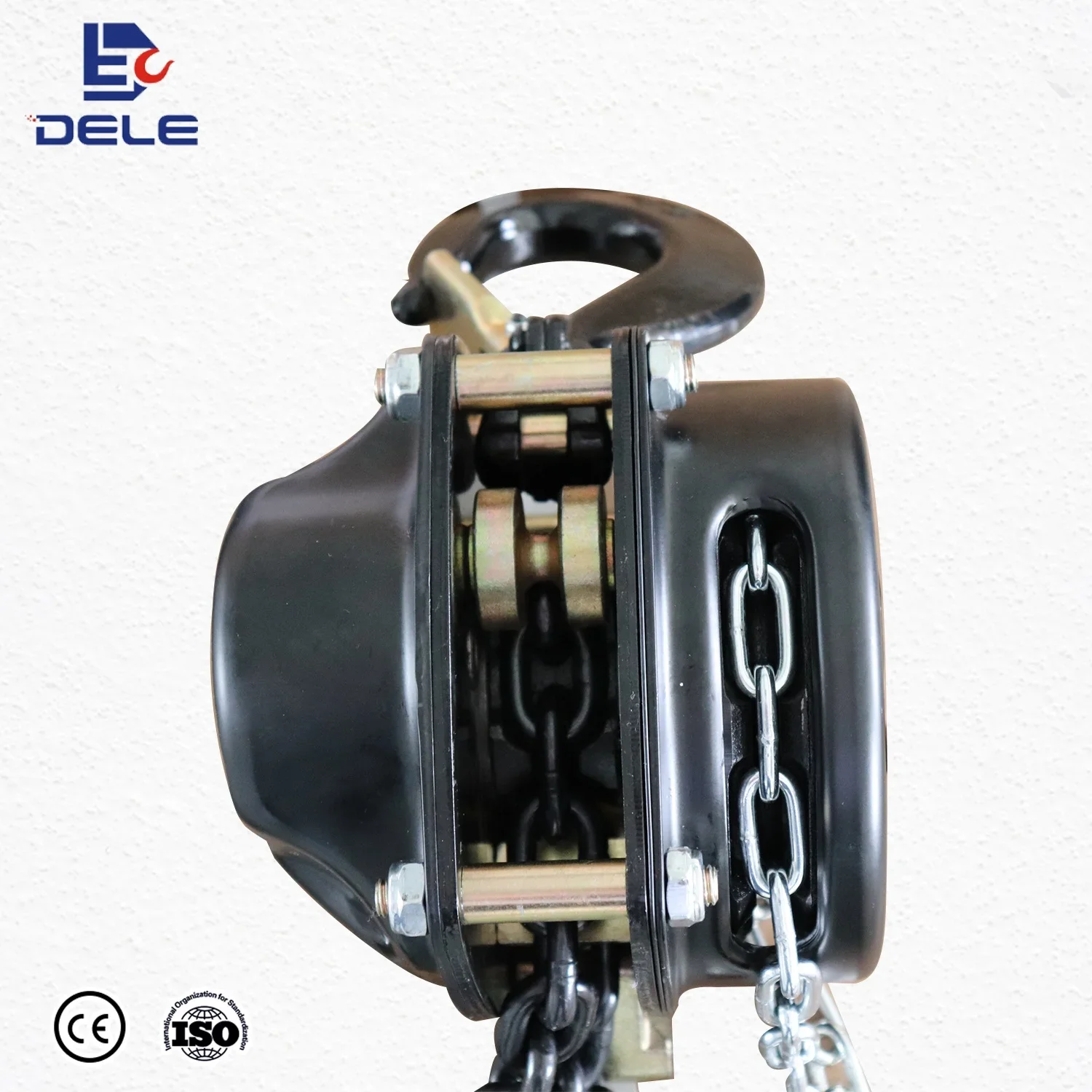 Faça pelo padrão: EN13157 1:Chain talha capacidade gama de 0.5ton a 50 ton 2: Produto tamanho compacto do projeto apropriado para todosAplicação. 3: Suspensão e carga ganchos são feitos de liga de aço,35CrMo tratou o calor e cabido com a segurança resistenteTravas, encaixe groove e inspeção pontos.4: Roda dentada e engrenagens usinadas fornecem mais suave,Operação mais eficiente.