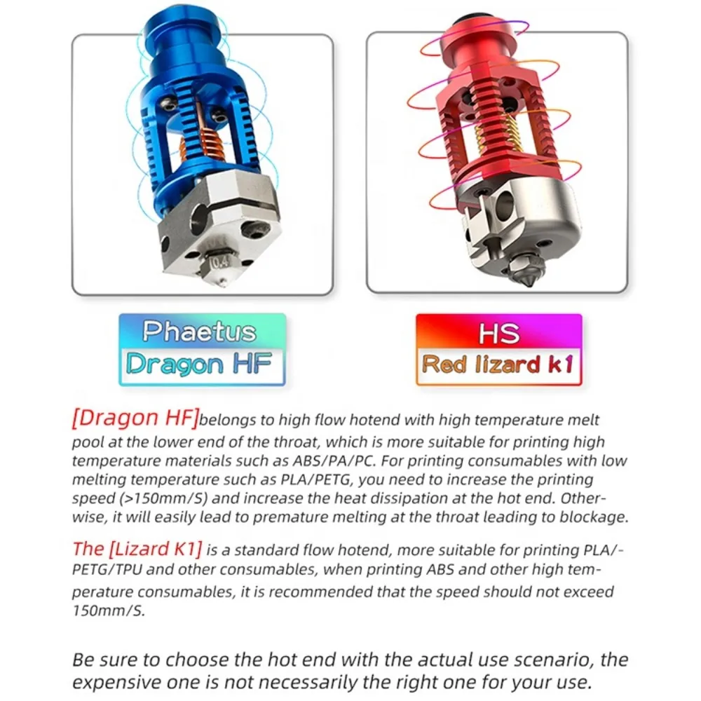 1. Phaetus DragonHigh Flow Hotend, Compatible with filamentsincluding: ABS,Nylon, HIPS, ASA, CARBON, PLA, TPU, PETG, PC, etc.