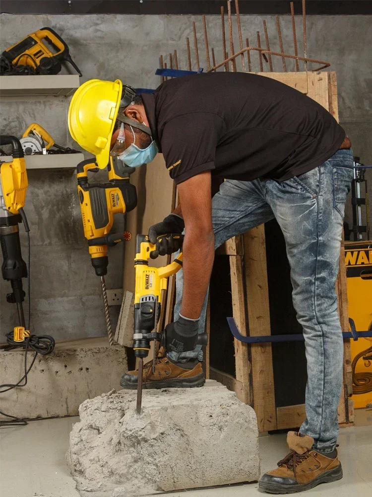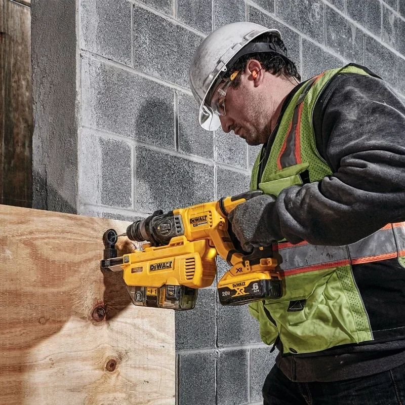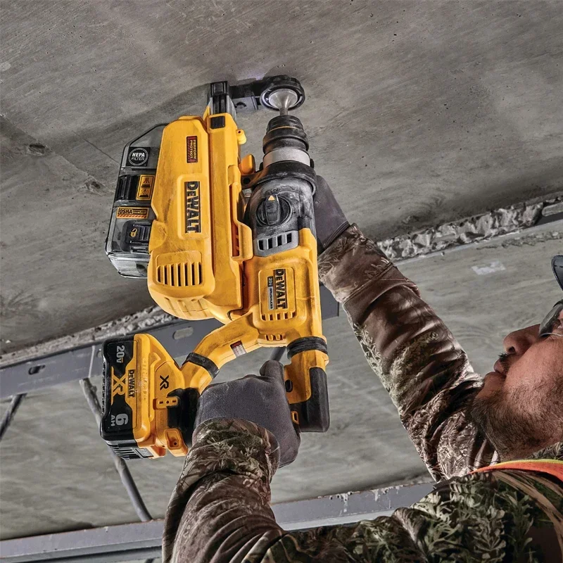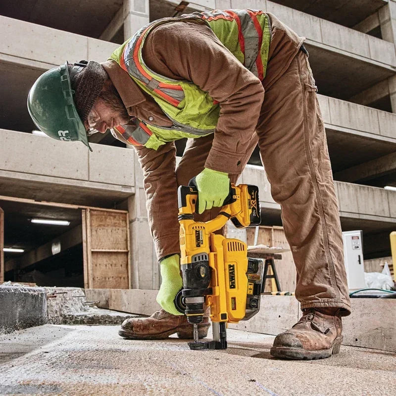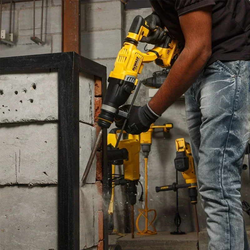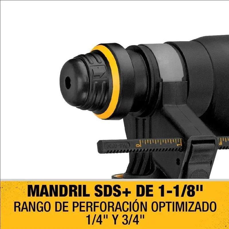 • O sistema de controle de vibração atrito SHOCKS da broca de martelo DEWALT 20V reduz a vibração do usuário nas alças, em comparação com martelos rotativos sem esse recurso.