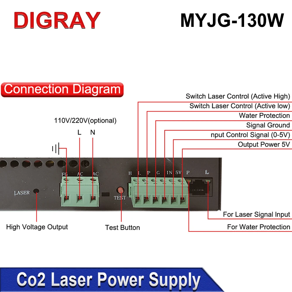 4. Laser Power Adjustment: input OV to 5V analog signal, can also input PWM signal.