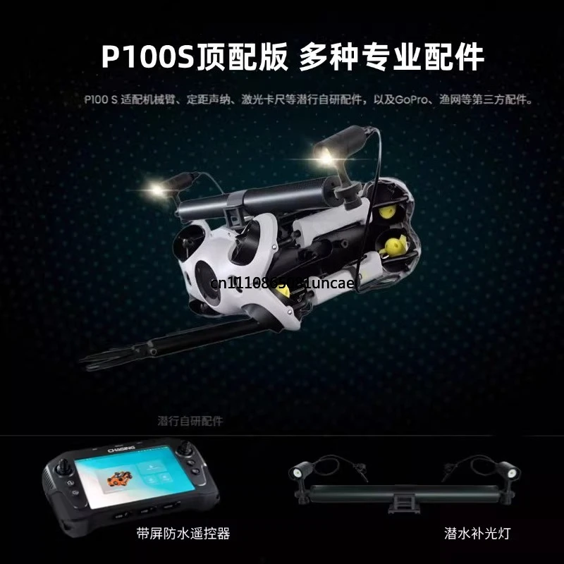 E: Versão topo de linha P100S (incluindo manipulador + caixa de ar + enrolador elétrico de 200m + bateria sobressalente de 200WH + holofote de 4000 lúmens)