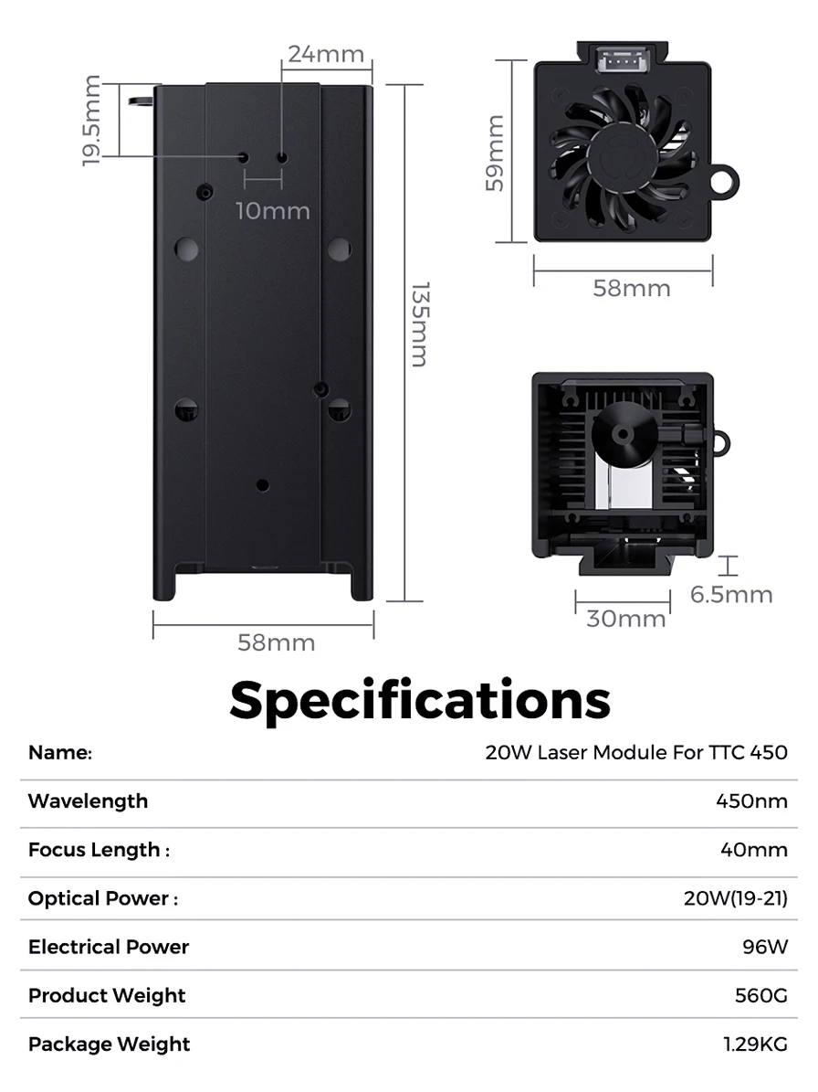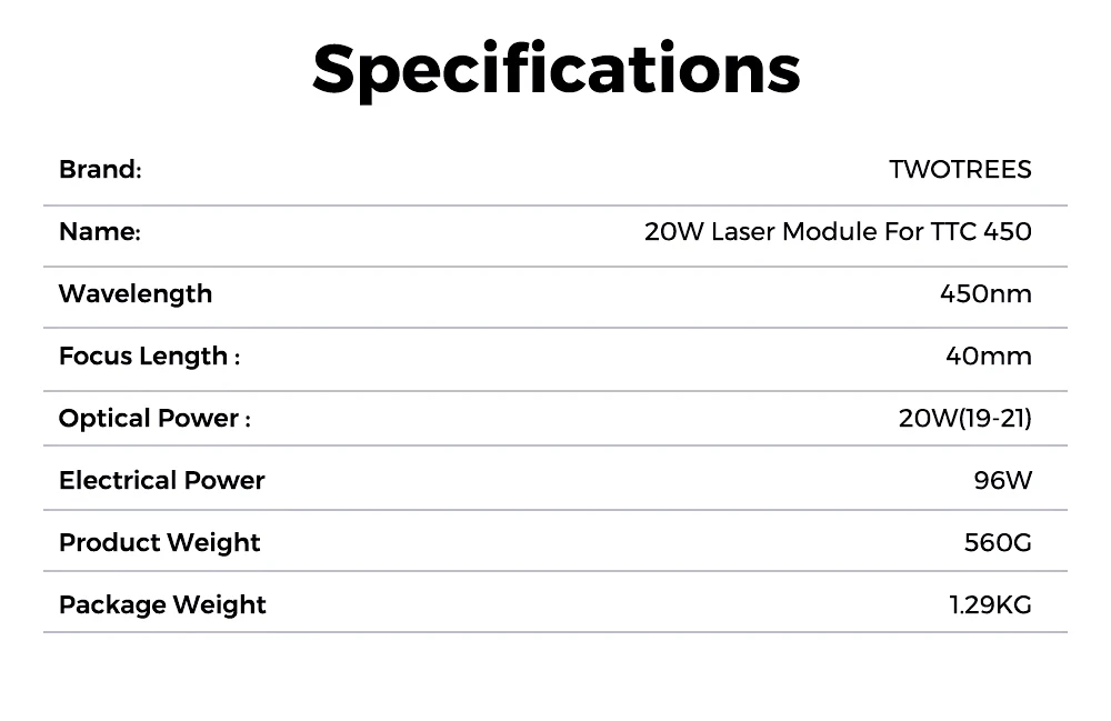 Duas árvores 20W Laser Module Para TTC450 Router