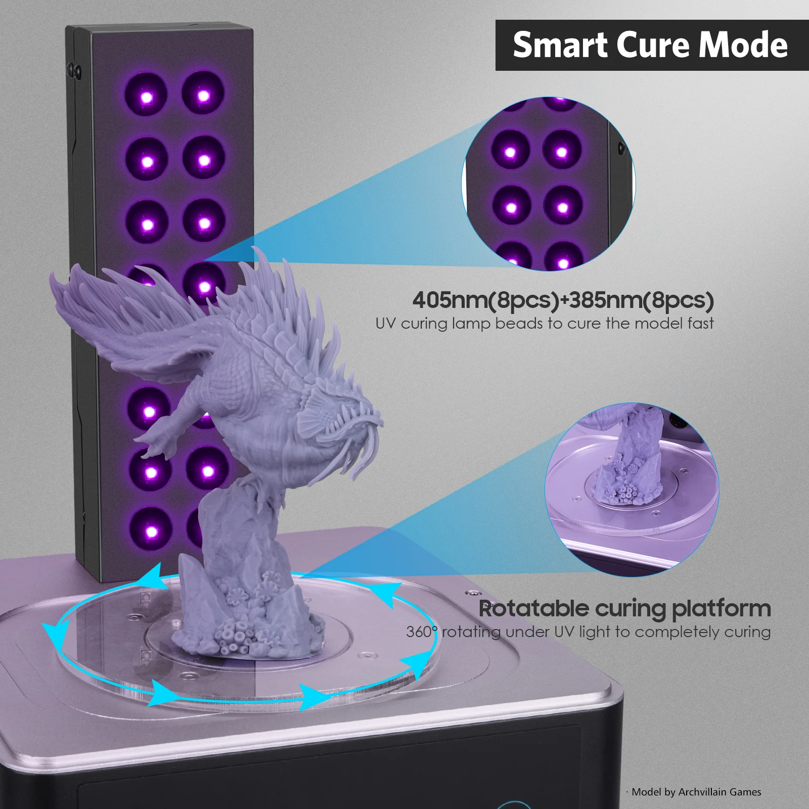 Poderosa luz UV do built-in 16pcs 405nm uma lâmpada de cura UV grânulos para curar o modelo rápido.