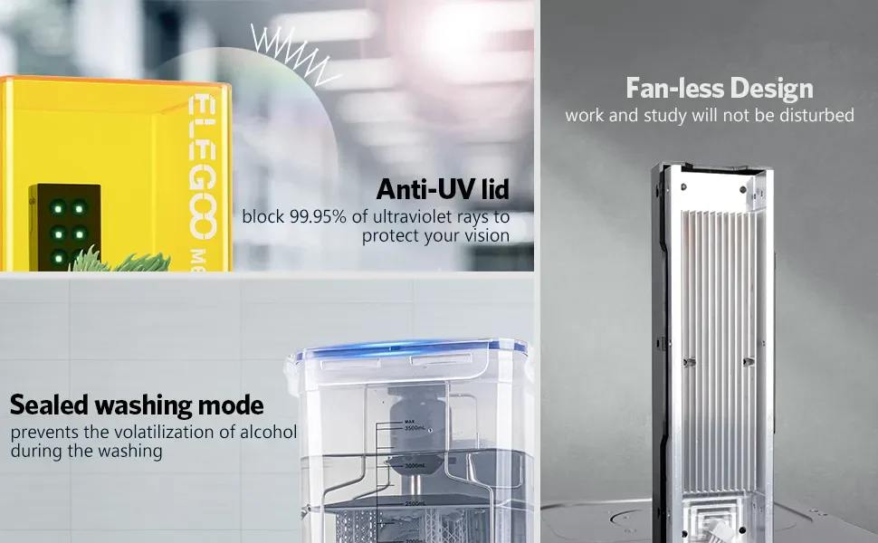 A lavagem selada evita a volatilização do álcool durante o processo de lavagem e protege sua saúde. A tampa anti-UV pode bloquear 99,95% dos raios ultravioleta para proteger seus olhos.