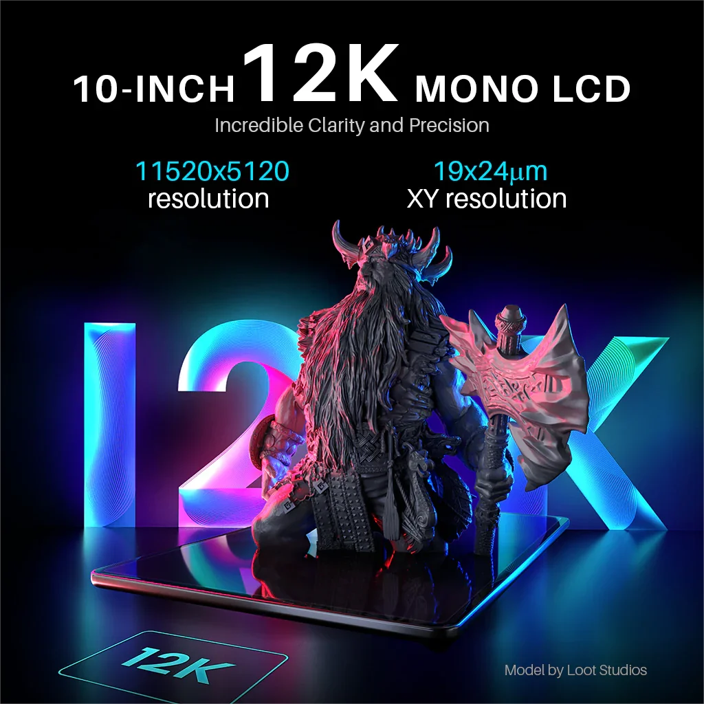 Com uma incrível resolução de 11520x5120 e resolução do eixo XY de 19x24um, nossa tela LCD Mono garante que seus modelos impressos em 3D sejam altamente precisos com detalhes impressionantes e nitidez excepcional.
