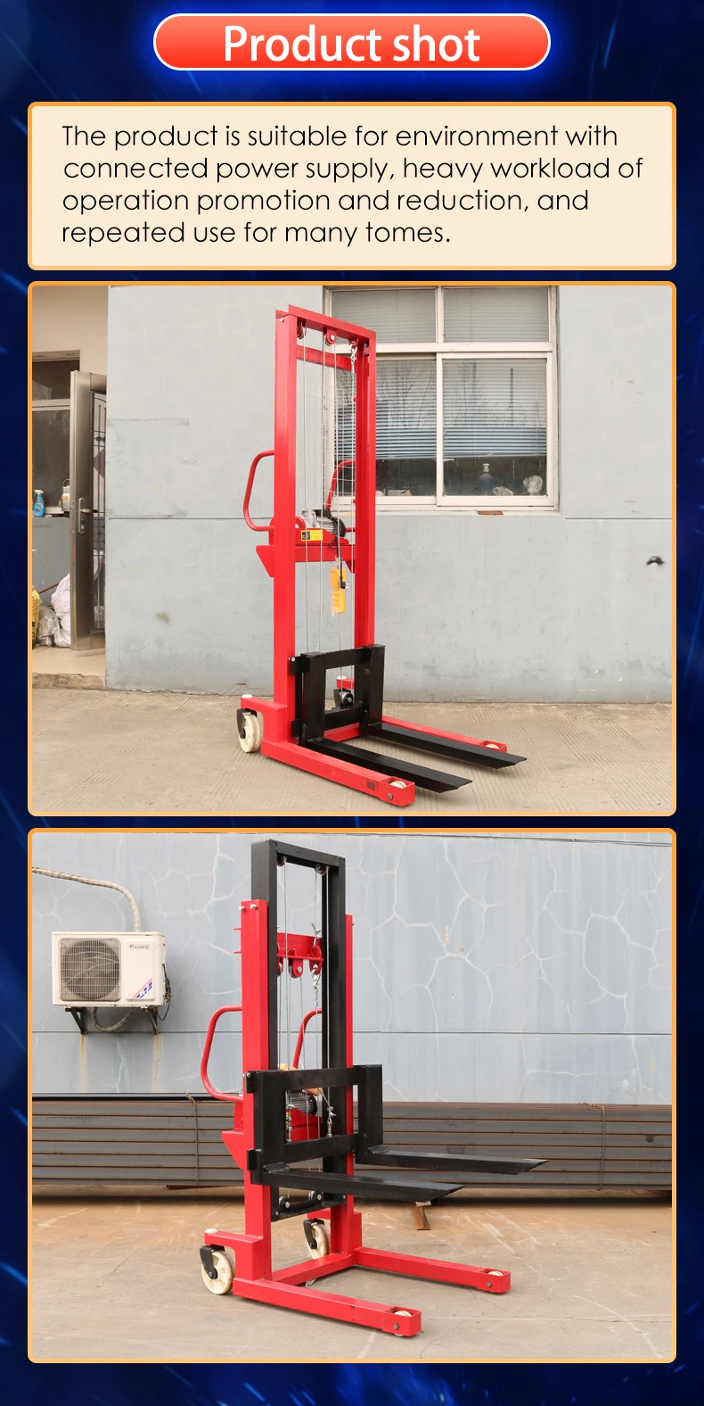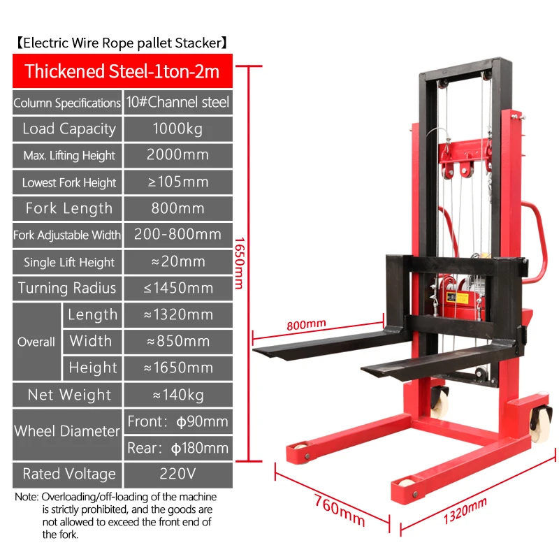 • Product name: 1 ton electric wire rope pallet stacker 2 tons forklift