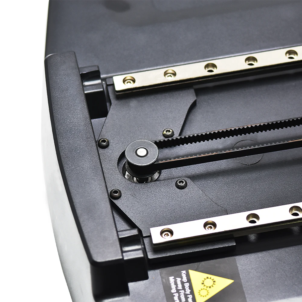 O sistema de trilhos para serviços pesados absorve a ressonância, reduzindo o ruído em 30% e eliminando artefatos de camadas para superfícies espelhadas.