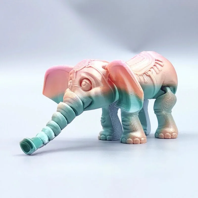 Estatueta de elefante impressa em 3d gradiente aleatório, estatueta de animal artesanal diy com articulação móvel, ornamento de elefante, decoração de mesa