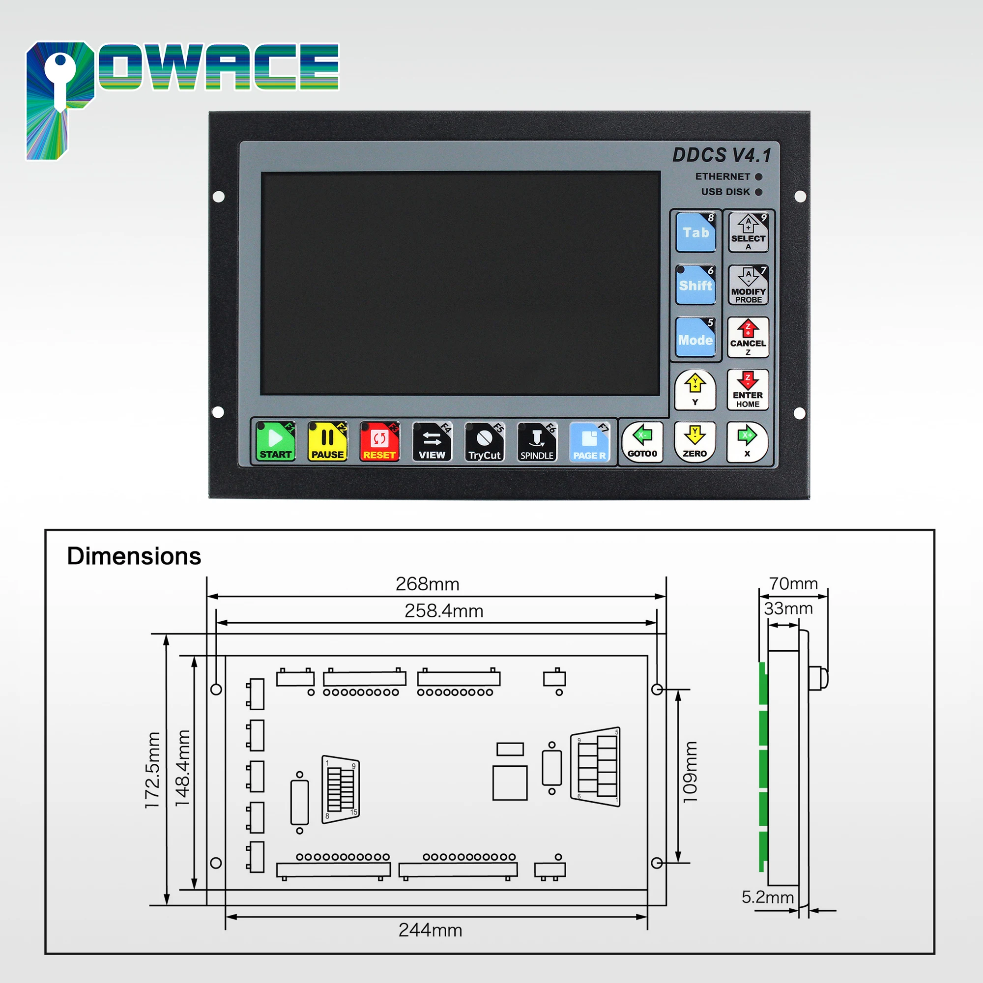 DDCS V4.1: tela TFT de 7 polegadas, relação de resolução: 1024x600,17 teclas de operação;