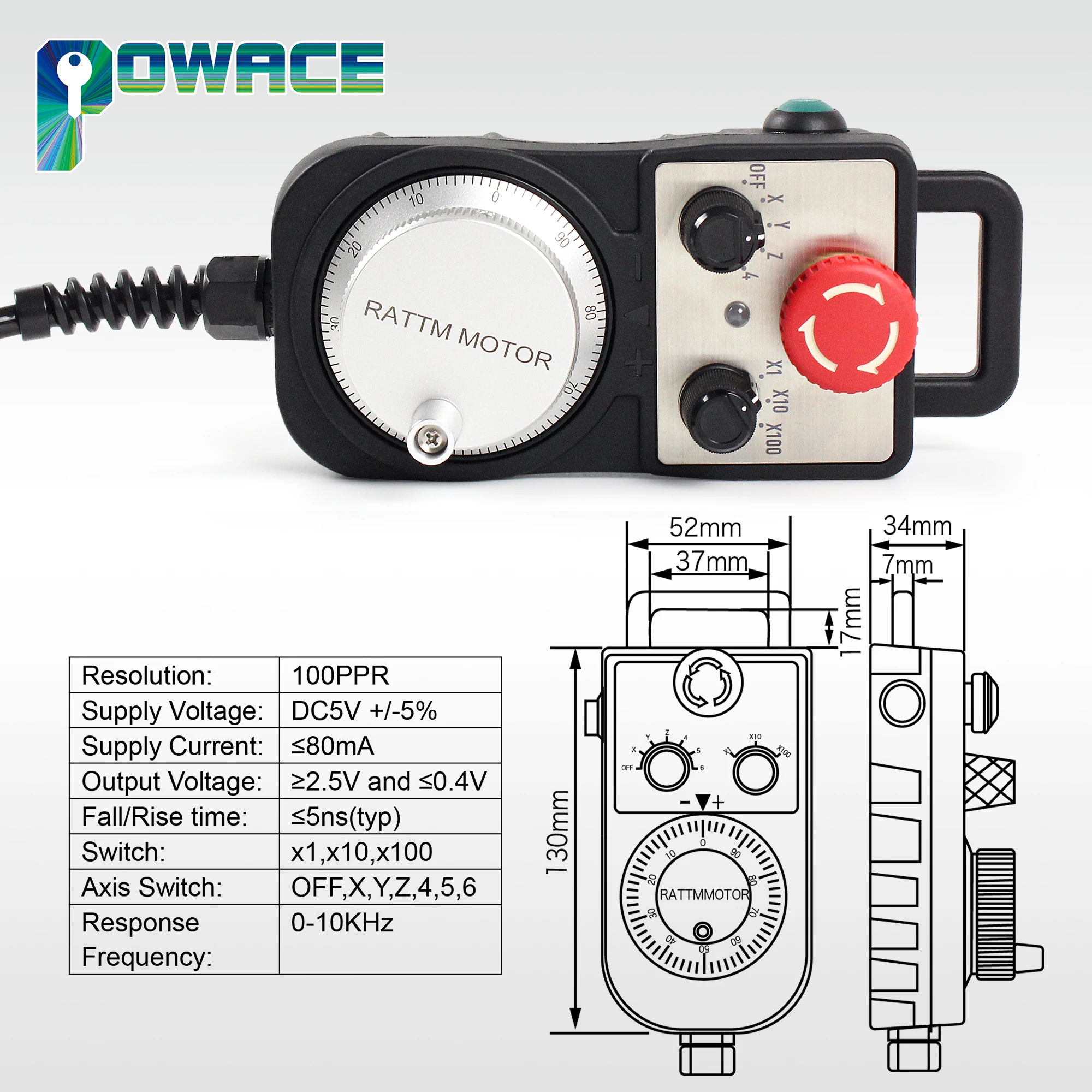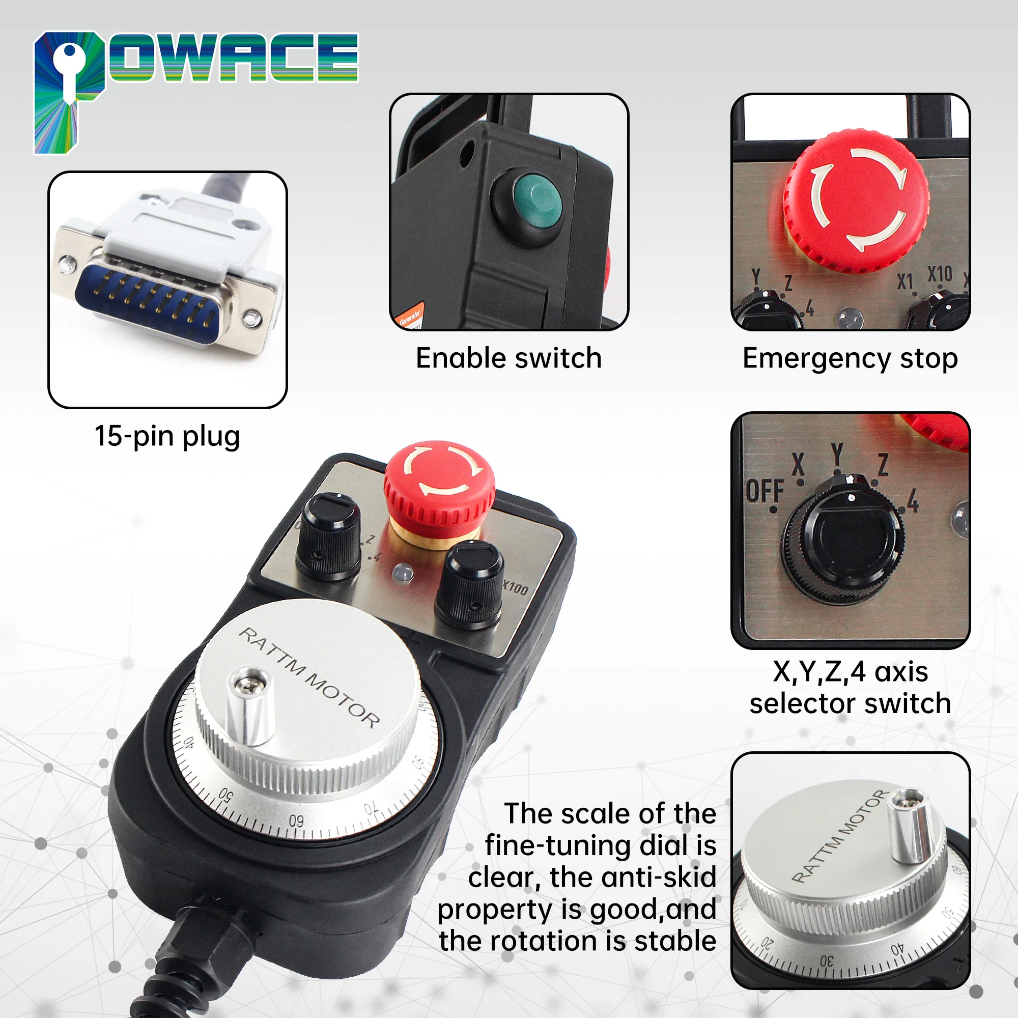 Volante pendente CNC MPG com batente de emergência com plugue de 15 pinos