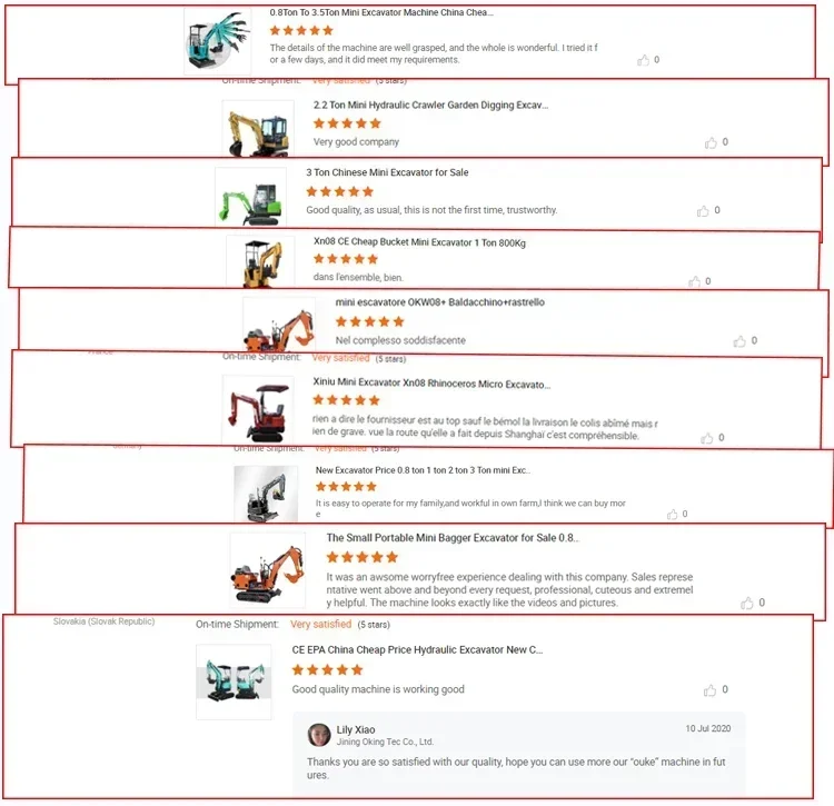 A:Dear customer, our factory can fully support mass production. According to your needs, we can mass produce 200+ small excavators per month to ensure on-time delivery. At the same time, we also welcome small batch customization and sample orders. Whether it is one or more units, we can provide you with customized services so that you can better evaluate the product quality and performance before placing a large order.