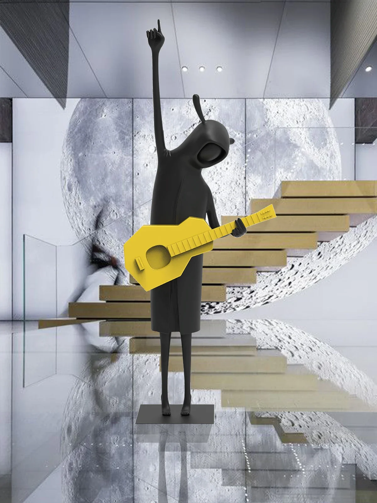 Figura abstrata personalizada tocando guitarra, ornamento, piso, decoração macia criativa, paisagem, ornamento, piso