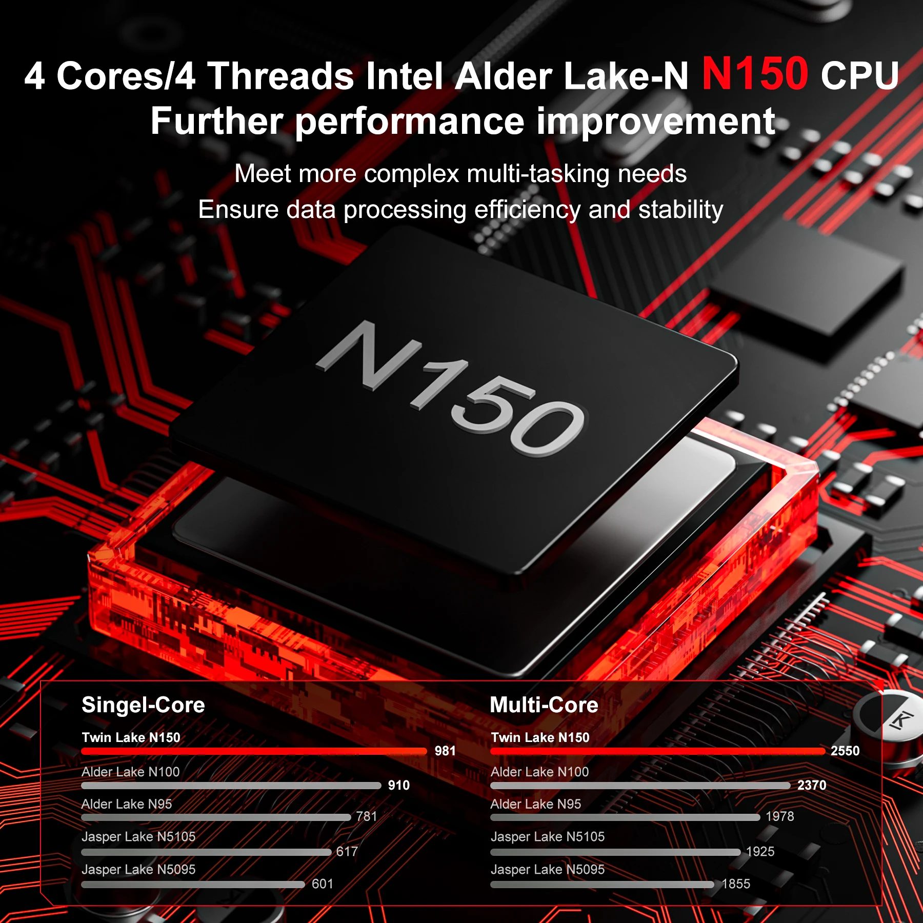 O mini pc FIREBAT AK2 PLUS equipado com o mais novo processador Intel Twin Lake-N N150/N100.A frequência base é 2.4GHz/a frequência dinâmica pode chegar a 3.60 GHz, com capacidade de memória de 8 GB/16 GB e capacidade de disco rígido de 256 GB/512 GB oferece amplo espaço de armazenamento para todos os seus arquivos, documentos e conteúdo de mídia.Processo central Intel 7, 10nm