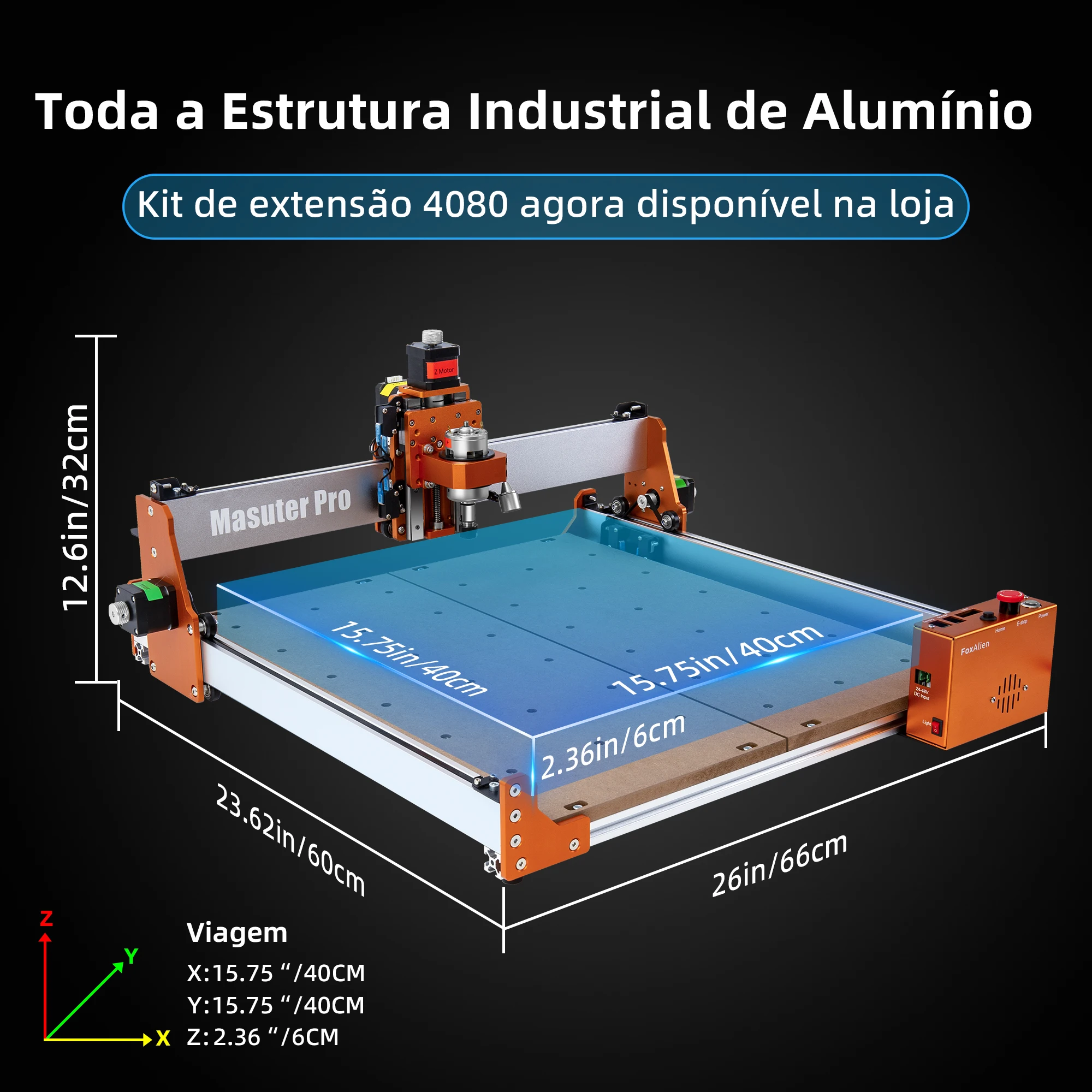 Especificações do Masuter Pro Machine Área de funcionamento ativa: 15,75 "x 15,75" x 2,36 "(400x400x60mm) Eixo: 775; 10000RPM Entrada Fonte: 12V/5A Motor deslizante: 1,3 A, 12V, torque de 0,25 Nm (2,2 em libras) OS suportados: Windows XP/7/8/10/11, MAC OS, Linux Lista Pacote Masuter Pro Machine 1x Masuter Pro CNC Router Machine (parte principal pré-instalada) Sonda 1x Z Caixa do controlador 1x 4x Segure-down Clamp Braçadeira do Eixo 1x52mm Braçadeira do Eixo 1x65mm 1x Fonte De Alimentação 1x cabo USB 1x disco U 1x Manual do Usuário 10 x bits do roteador Embalagens de parafusos