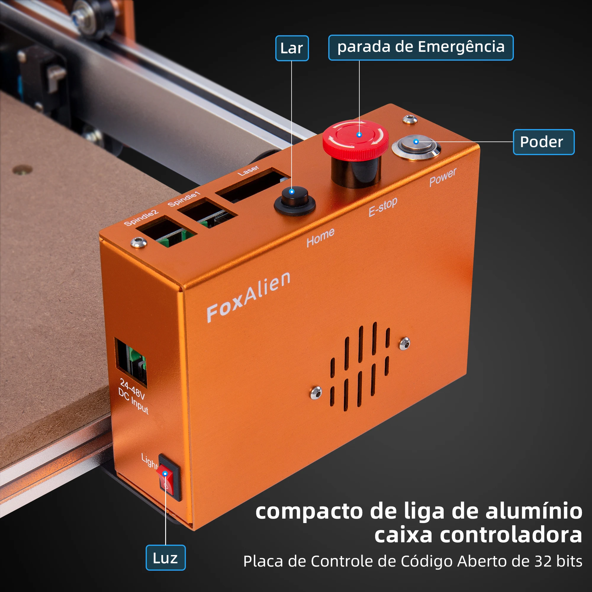 【Caixa atualizada do controlador】 A placa de controle é promovida a uma caixa compacta do controlador. O botão de emergência e o botão home são mais fáceis e convenientes de acessar. A caixa de controle também é à prova de poeira para fácil manutenção.