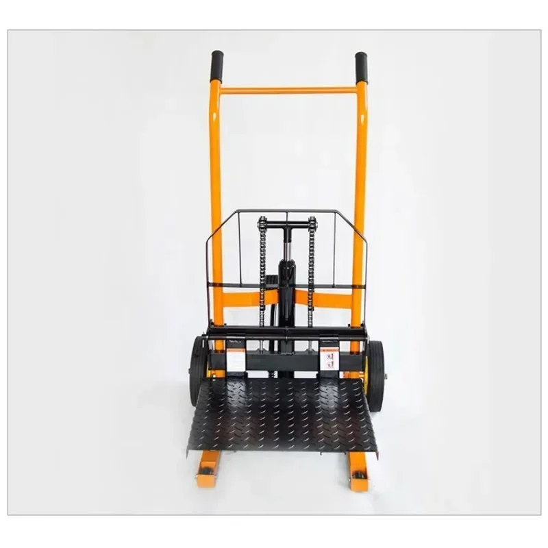 Garfo plano montado em caminhão de elevação hidráulica pequena roda universal mini empilhadeira de carregamento e descarga