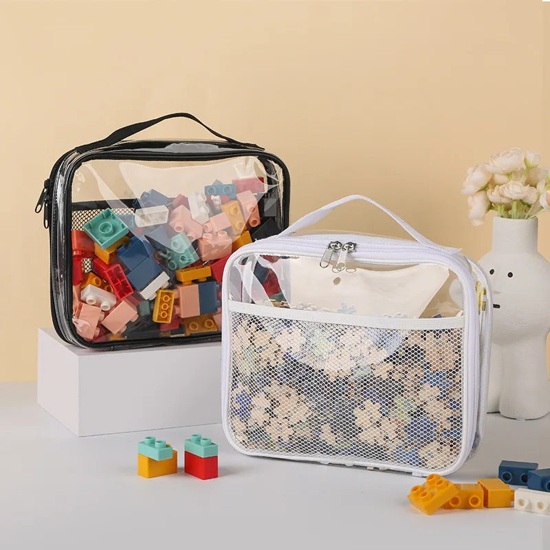 Grande capacidade pvc transparente malha saco de armazenamento à prova dwaterproof água casual saco de armazenamento de maquiagem saco com zíper portátil saco de embalagem de brinquedos