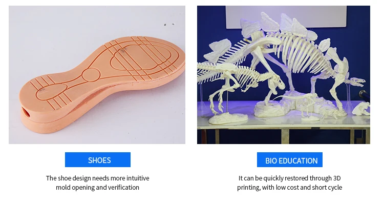 SLA resina fotossensível impressão 3d é uma indústria popular tecnologia de impressão 3d, sed em muitos campos, tais como modelo de mão, protótipo fazendo, placa guia médico, escritório de arte, educação, indústria de calçados, arquitetônico e assim por diante.