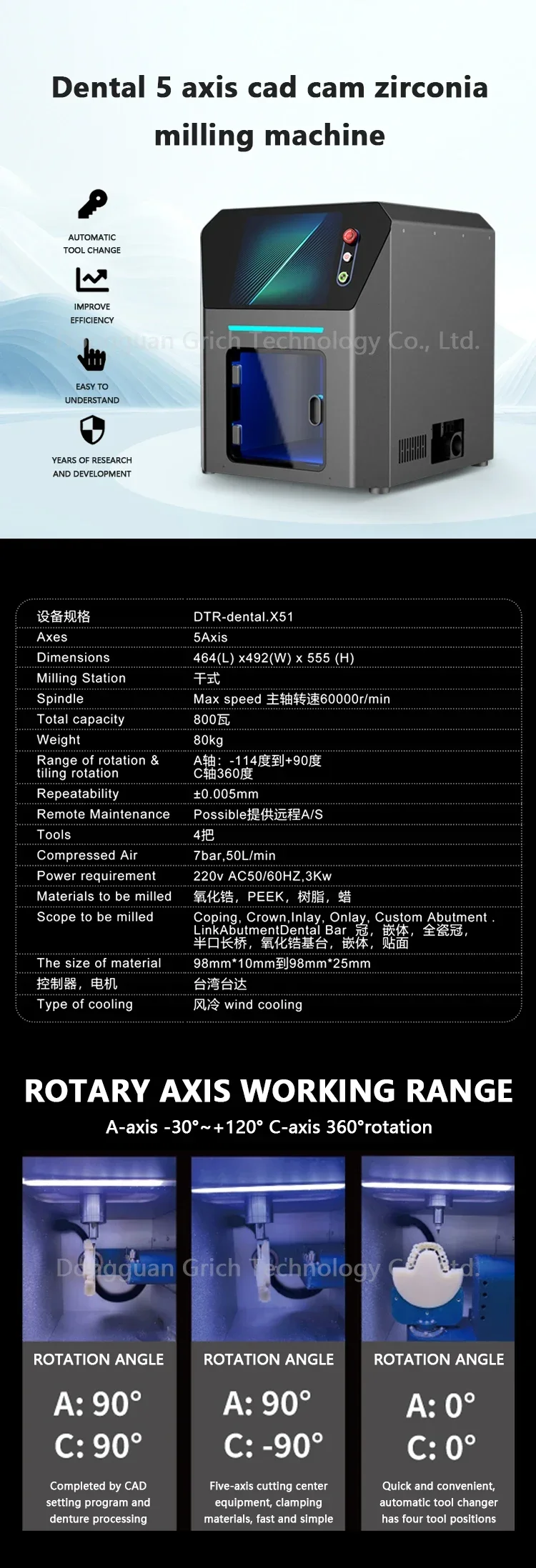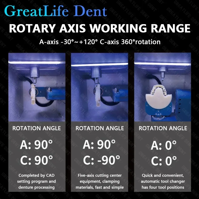 GreatLife Dent DTR-X51 Corte de zircônia CAD/CAM Laboratório odontológico 5 eixos Seco CNC Bloco de zircônia Fresadoras de metal