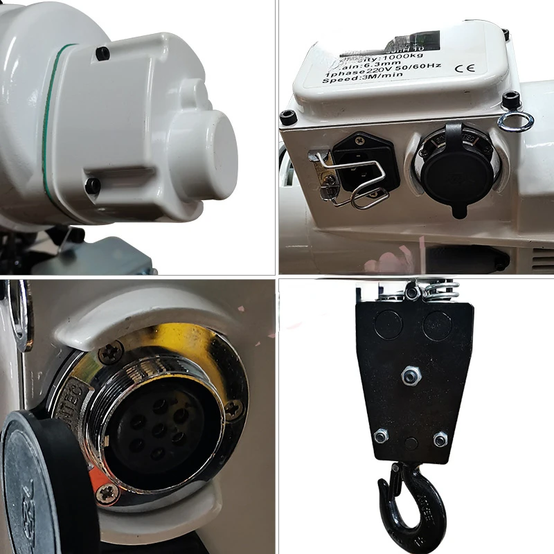 Talha Elétrica de Corrente Cap. 500 kg Elevação 3 Metros Velocidade 12m/min Tensão 110V 220V