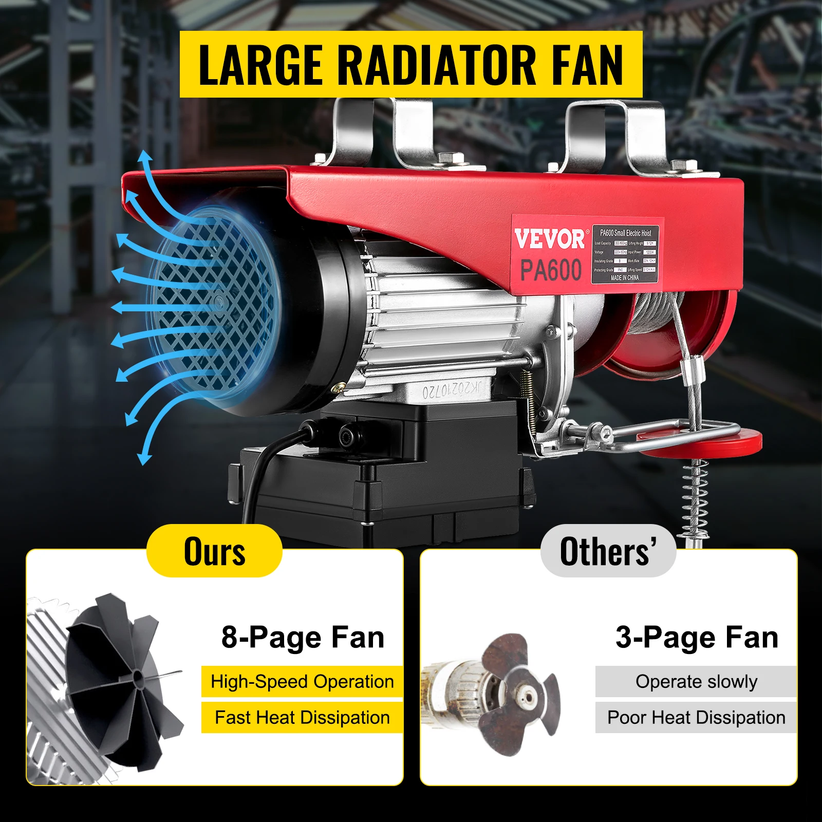 O guincho elétrico adota um motor de cobre 1150W forte com alta eficiência e baixo ruído, enquanto os outros são apenas motores de alumínio. Além disso, este motor de alta qualidade é deformado por fio de cobre puro, que tem boa condutividade elétrica e alta resistência à tração.