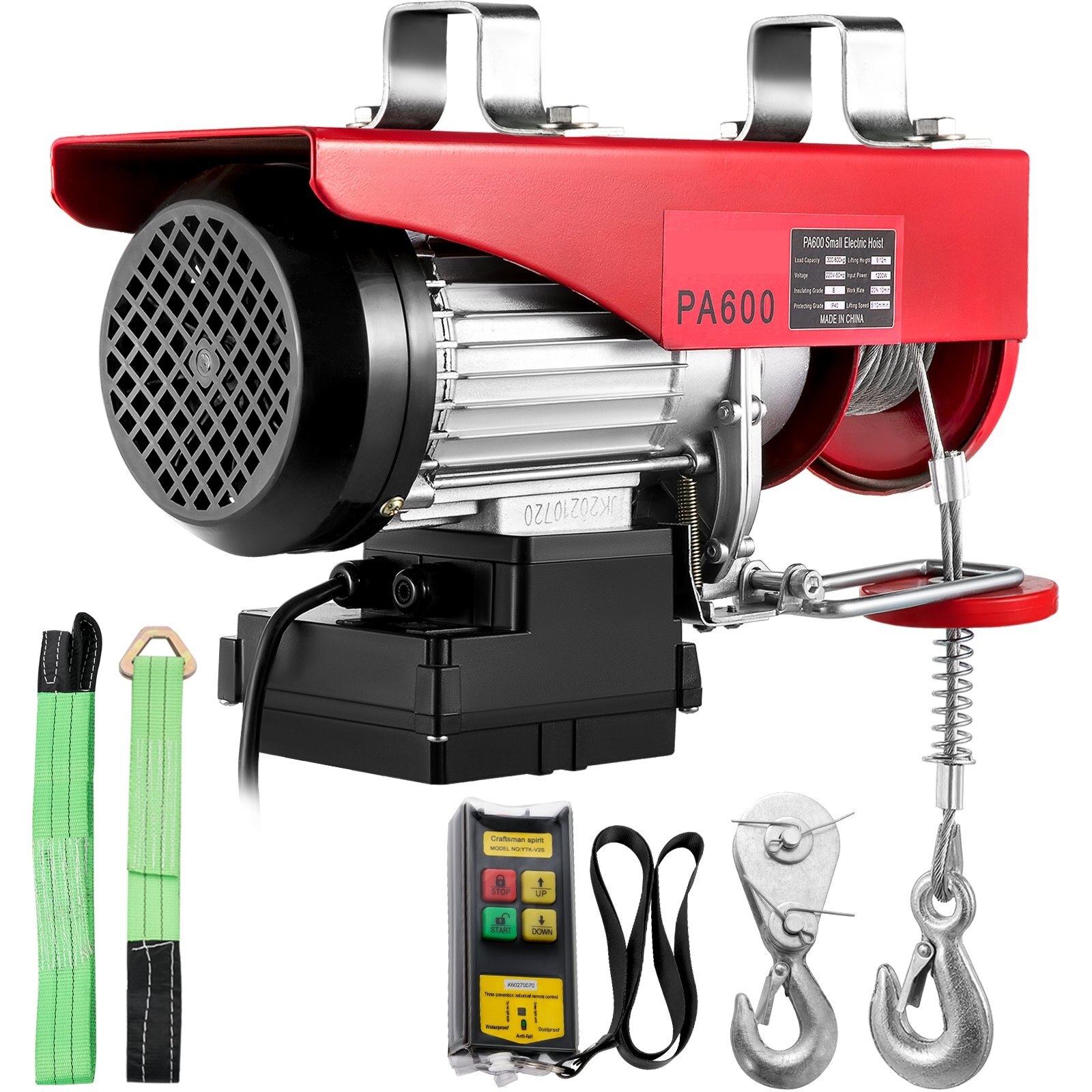 Guincho de aço elétrico com controle remoto sem fio, grua elétrica, grua de elevador, 1320lbs, 600kg, 220V, 110V, 12 m/s