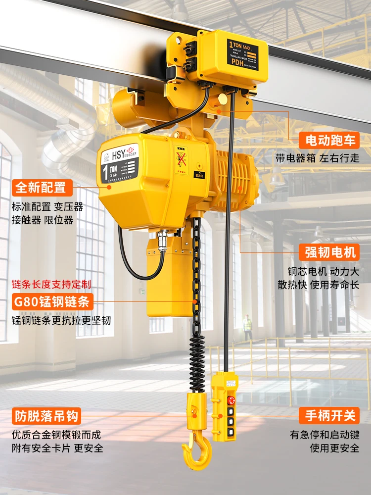 Guindaste de corrente elétrico da grua, 0,5 toneladas, 1 tonelada, 2 toneladas, 3 toneladas, 5 toneladas, 380v