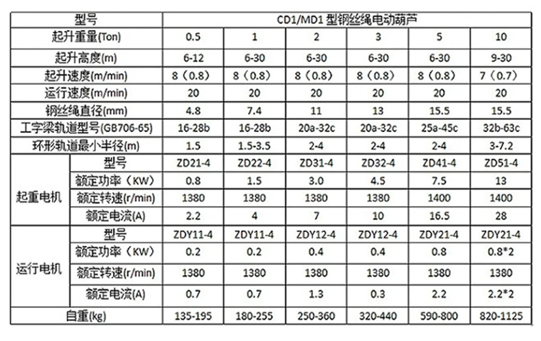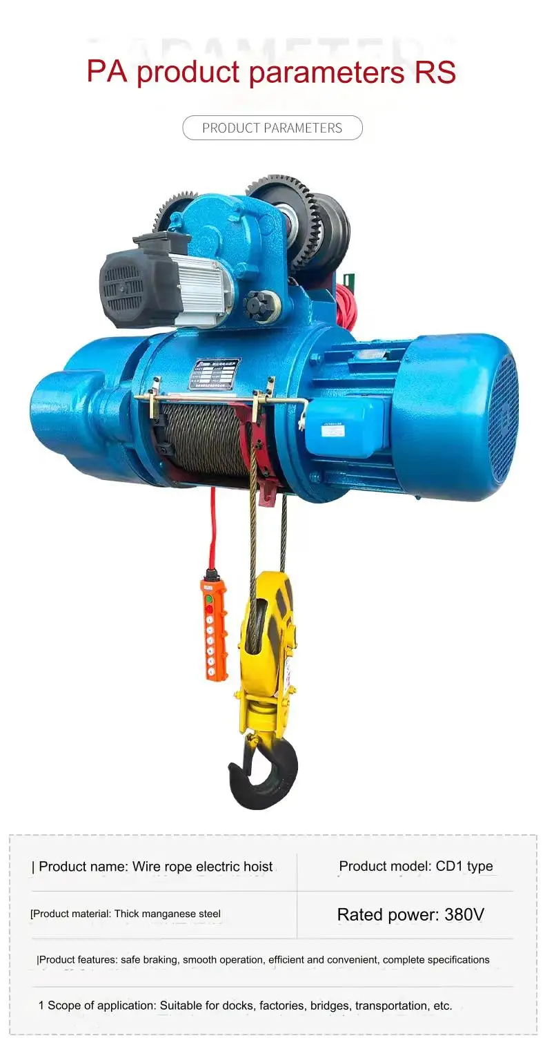 Guindaste de pórtico de talha elétrica com cabo de aço tipo CD1