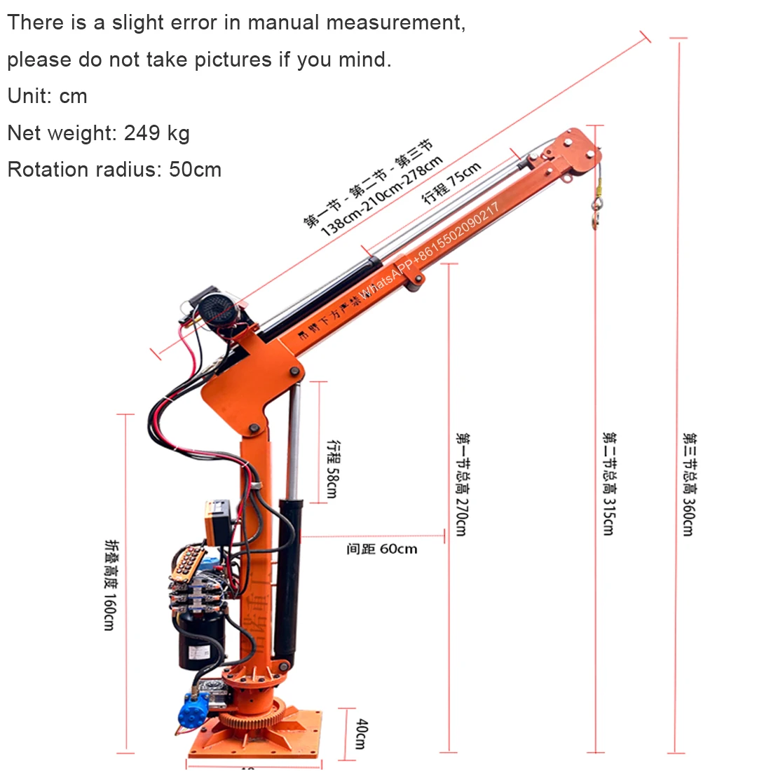 12V24V elevator vehicle mounted crane 2t full hydraulic vehicle mounted remote control electric winch crane