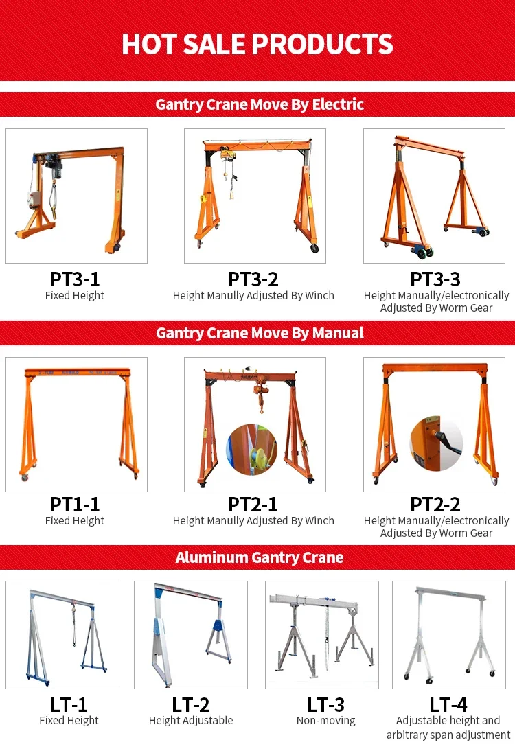 O guindaste portátil do pórtico da altura ajustável do tipo elétrico da grua é o material o mais popular do tipo