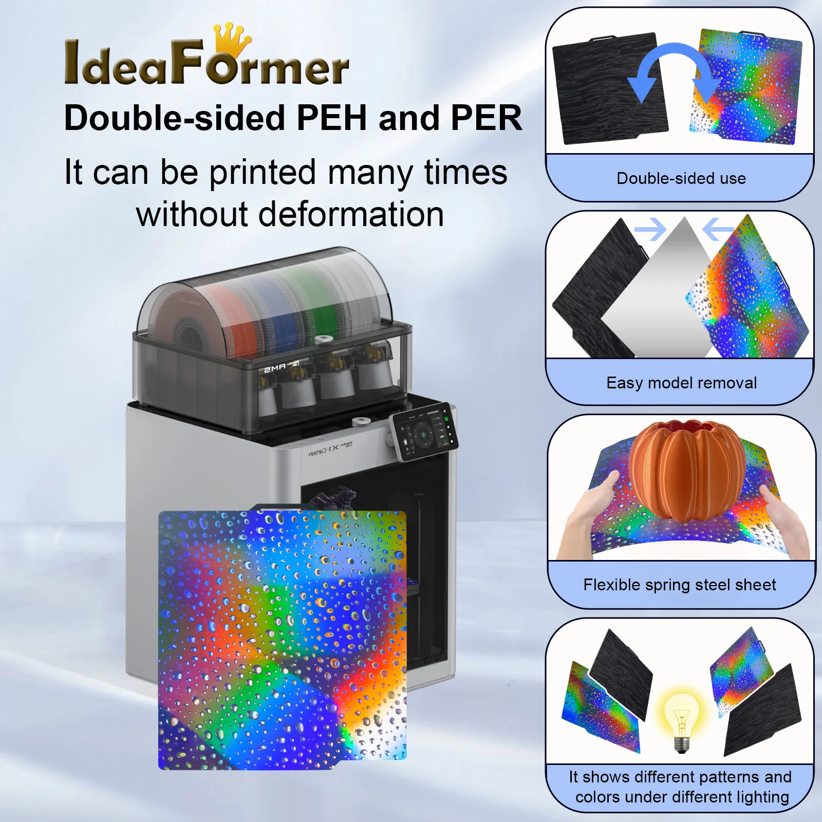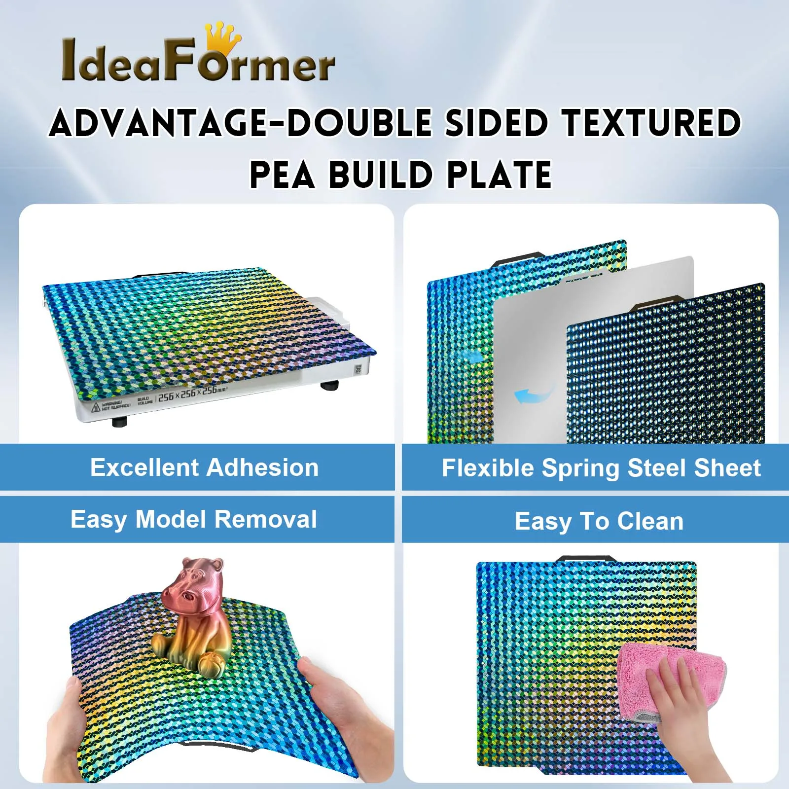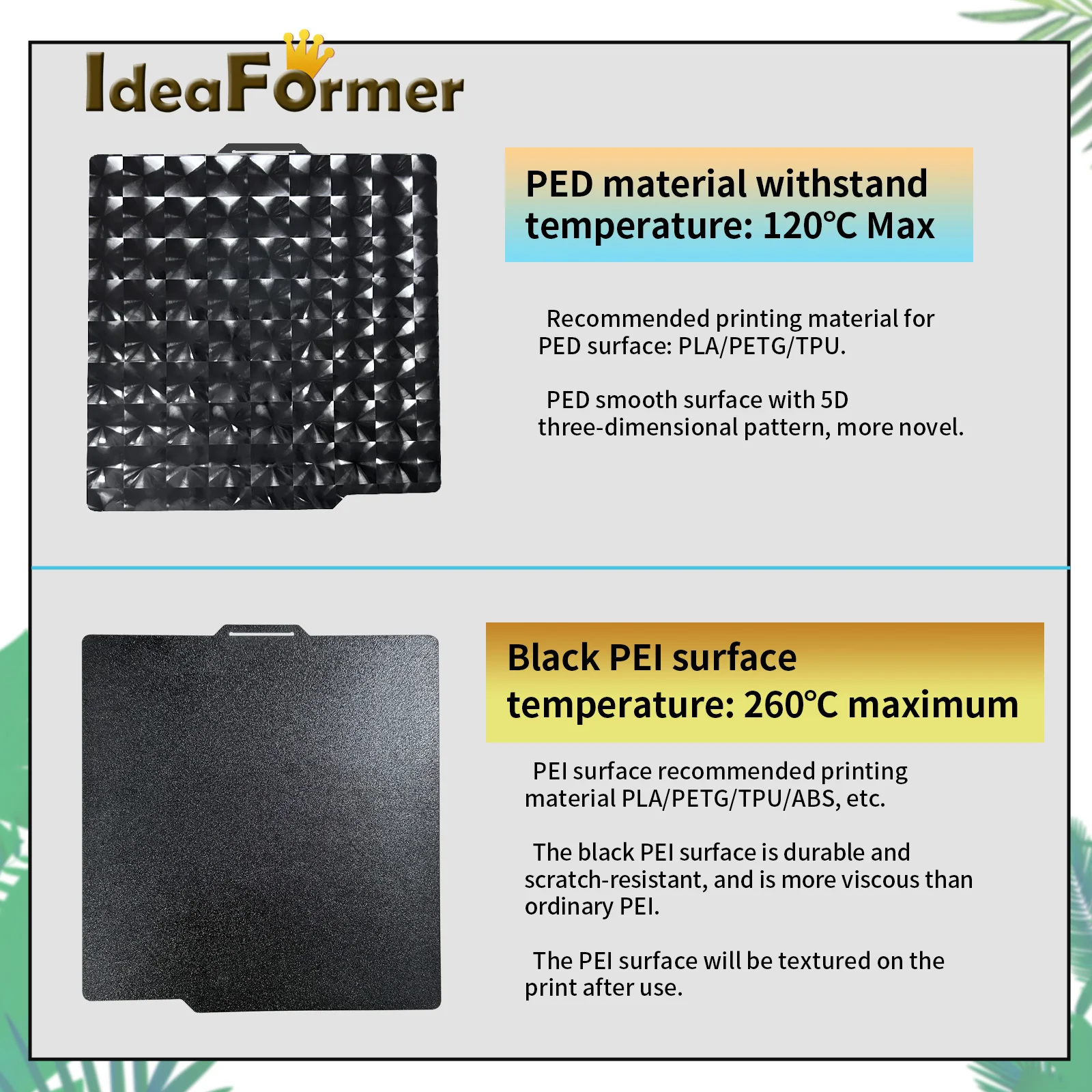 Superfície PEF/H1H/PEY: Adequado para PLA, TPU, PETG, ABS.