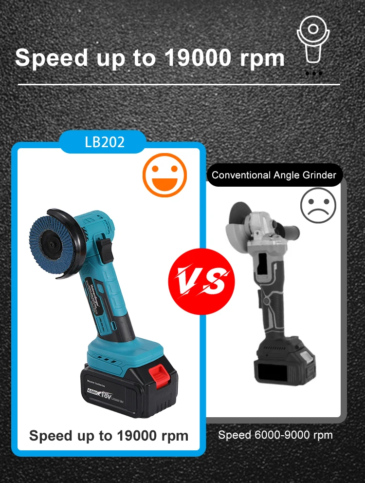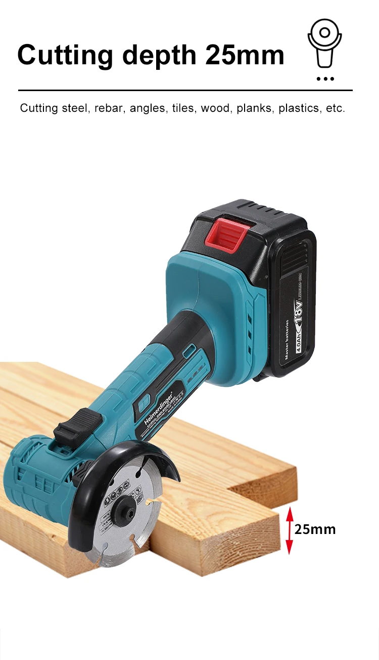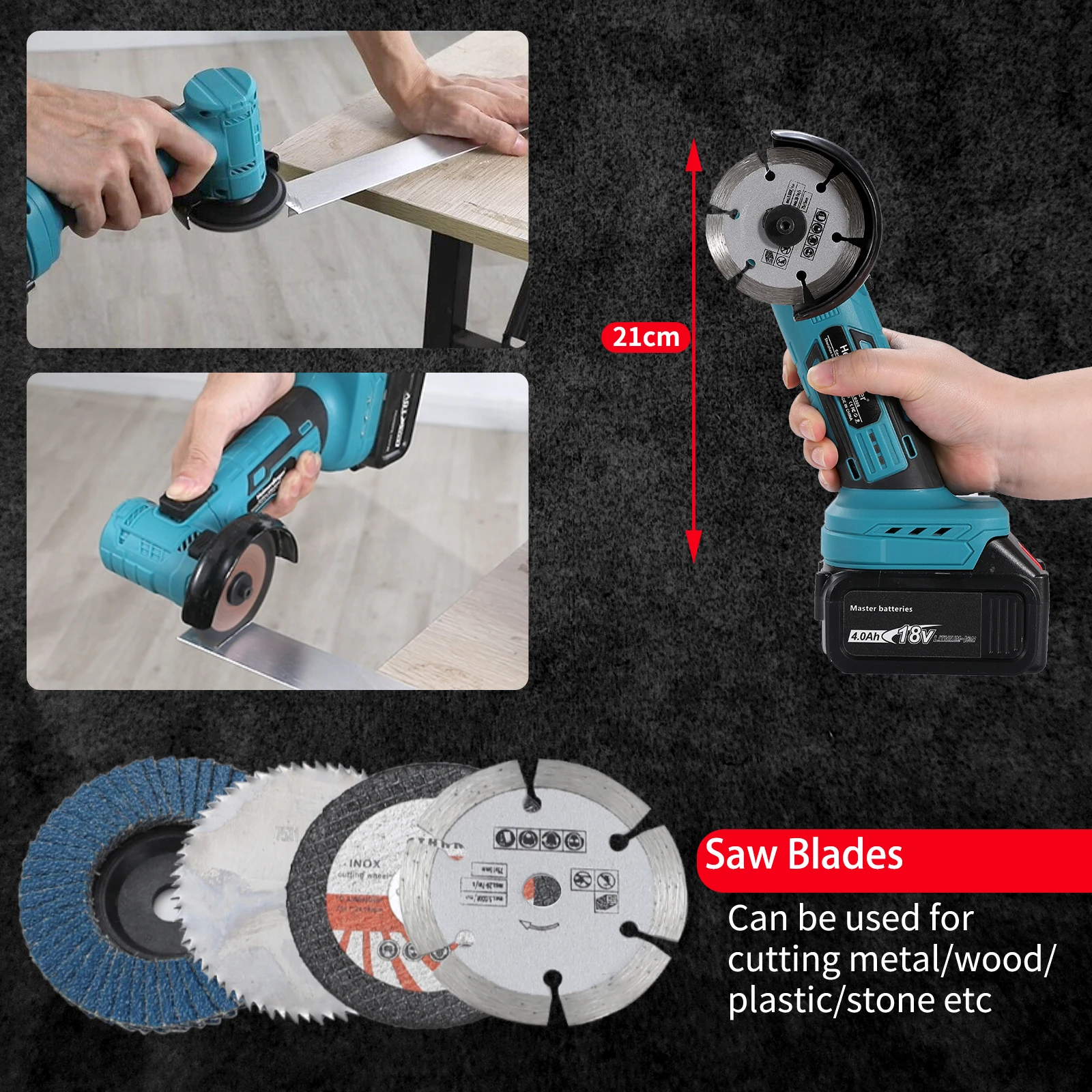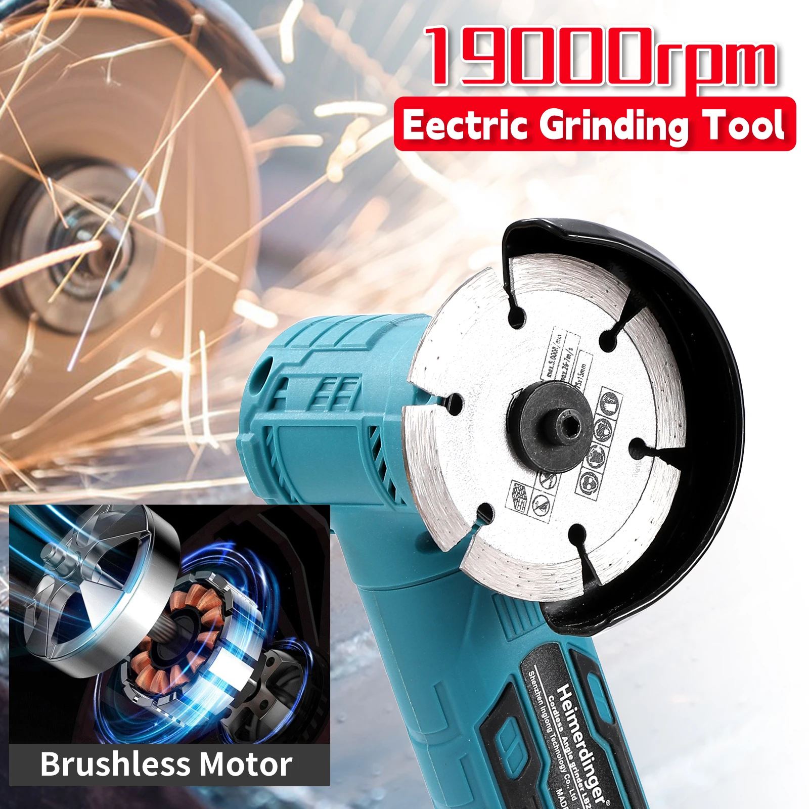Heimerdinger 18V Brushless Mini Angle Grinder Kit, ferramenta de moagem elétrica sem fio, 19000rpm Compact Power cortador portátil