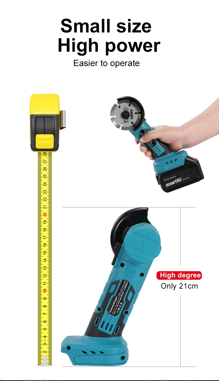 Heimerdinger Brushless Mini Angle Grinder Kit, ferramenta de moagem sem fio, Compact Power, cortador portátil, sem bateria, 18V, 19000rpm