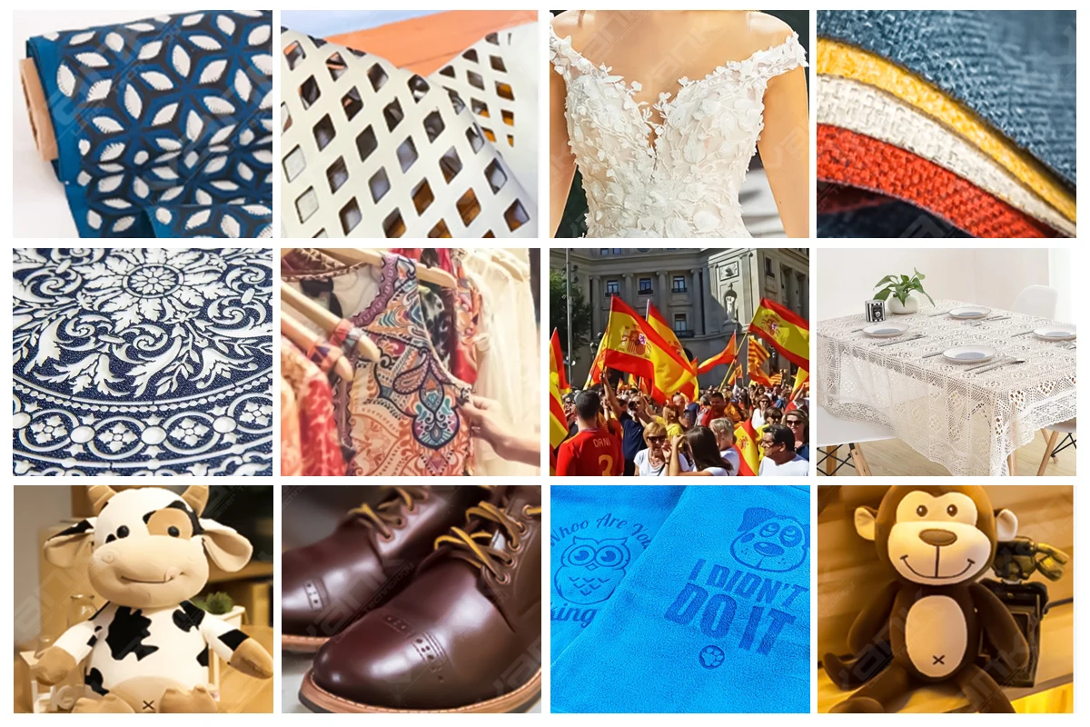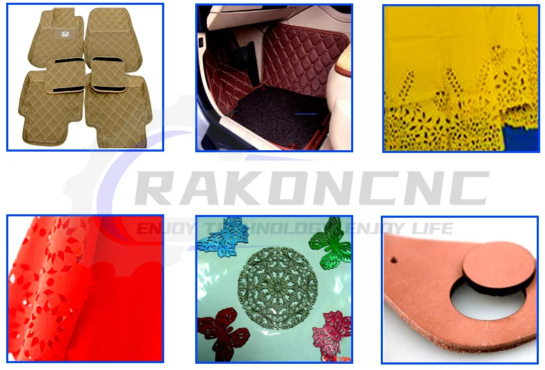 1.Fabric laser cutter adopts auto feeding system, apply netted platform with special design, very convenient for free movement of processing pieces.