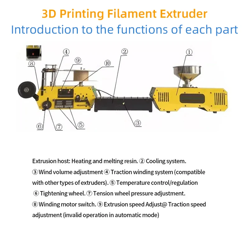 Ht400 extrusora de filamento 3d, máquina extrusora de filamento 3d, extrusora de consumíveis de impressão 3d de mesa, 1.75mm 2.85mm, bicos de 3mm