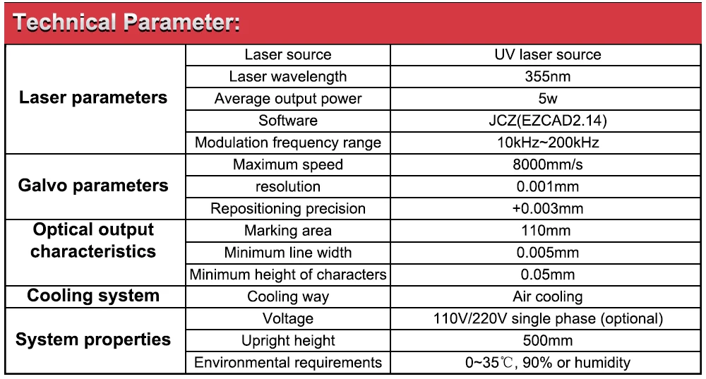 - Marking Speed: 8000mm/s