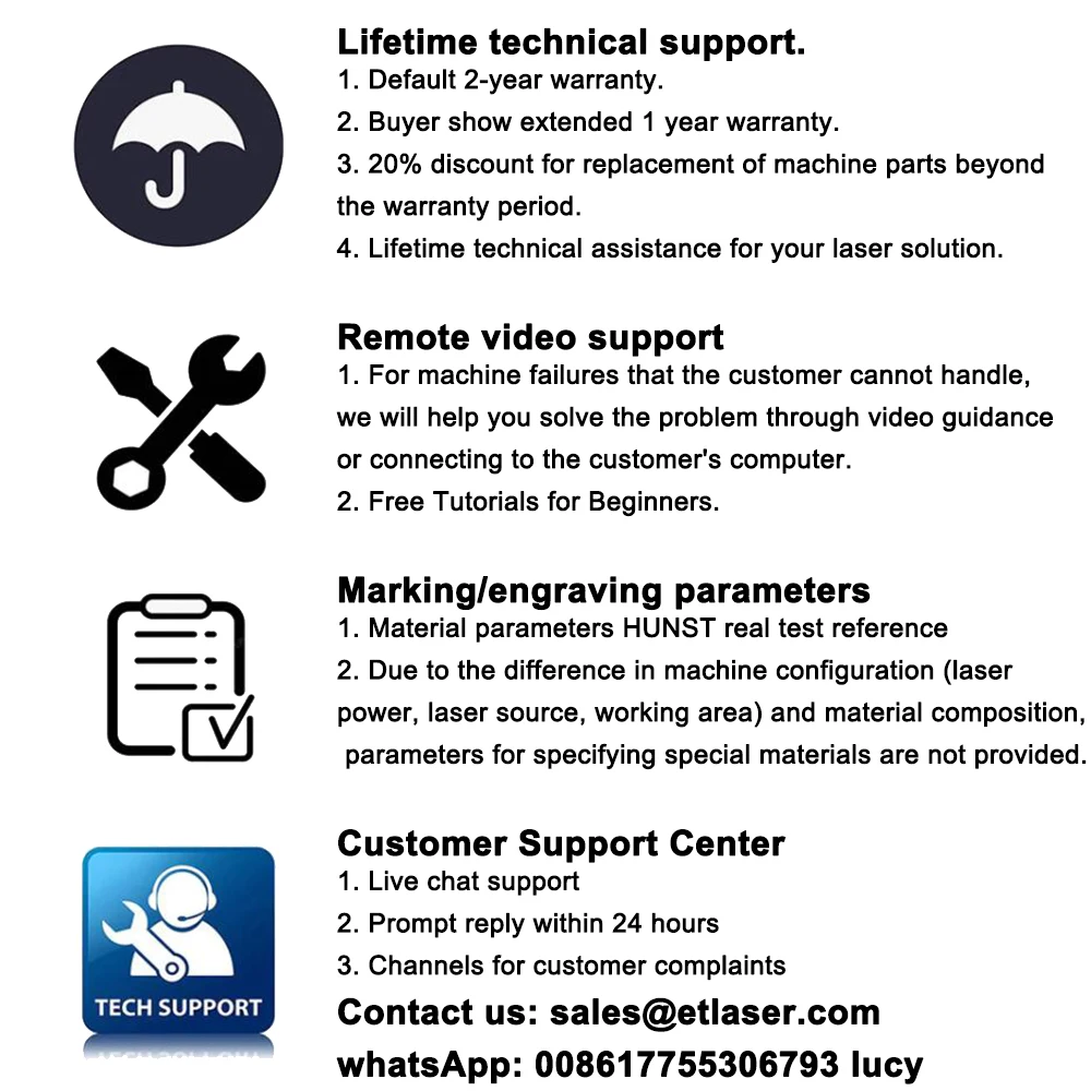 Telefone 24 horas 0086-0769-27223327 008613929256735 e e-mail: ht AT hunstlaser.com suporte técnico online.