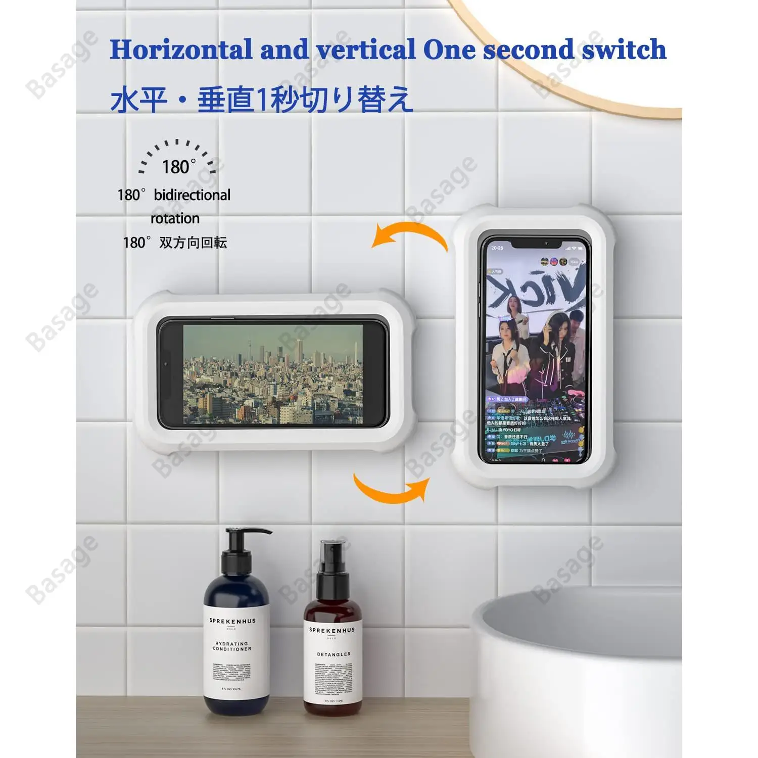 Com a rotação original e o projeto retrátil, este suporte impermeável do telefone da parede do chuveiro apoia o ajuste do ângulo de 120 graus e a rotação horizontal e vertical de 360 graus, ideal para mudar a distância e o ângulo de visão. Você pode facilmente jogar no telefone na posição desejada e proteger seu telefone da água enquanto estiver no chuveiro.
