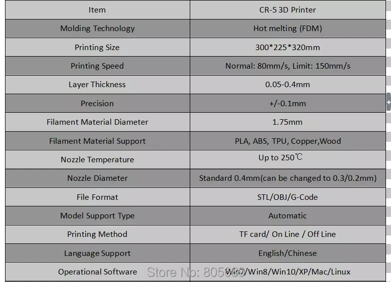 - Printing Material:: ABS/PLA 1.75mm,TPU,Wood,NILONG,ETC.