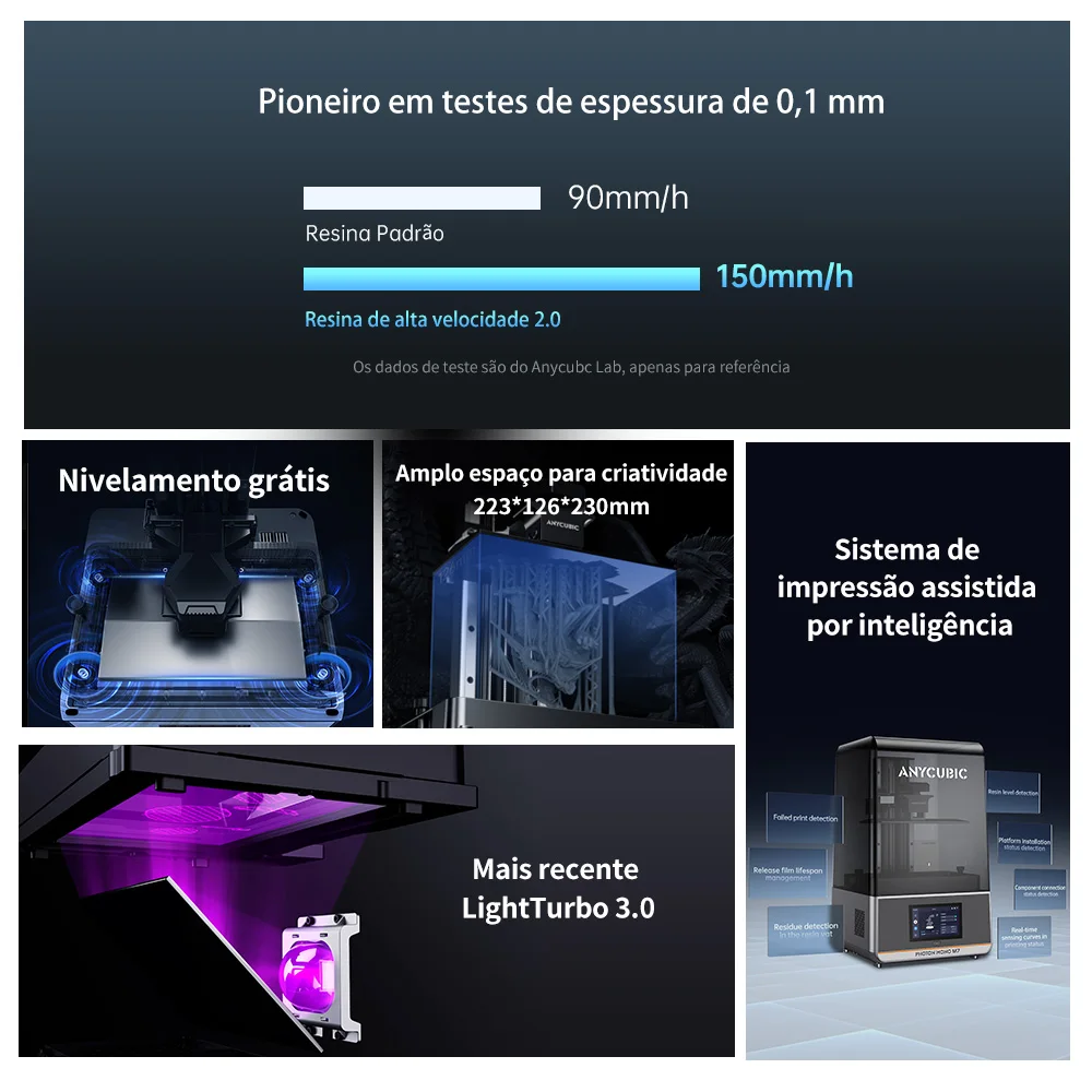 90mm/h para resina uniforme padrão l A nova LighTurbo 3.0 l Impressão inteligente de ajuda de fluxo de trabalho