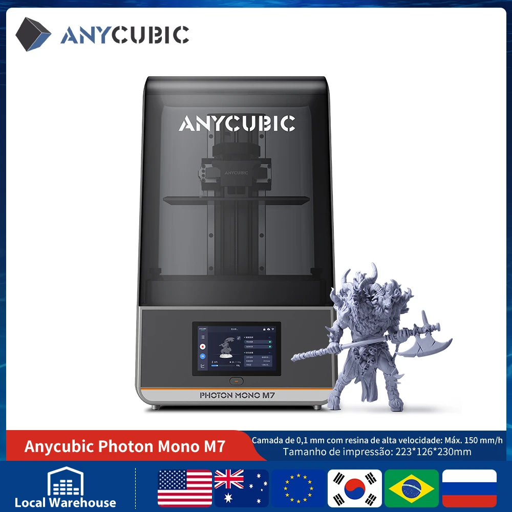 Impressora 3D ANYCUBIC Photon Mono M7 14K Velocidade de até 150 mm/h Impressão Mono MSLA 10 ”LCD Resina Impressora 3D Tamanho 223*126*230m
