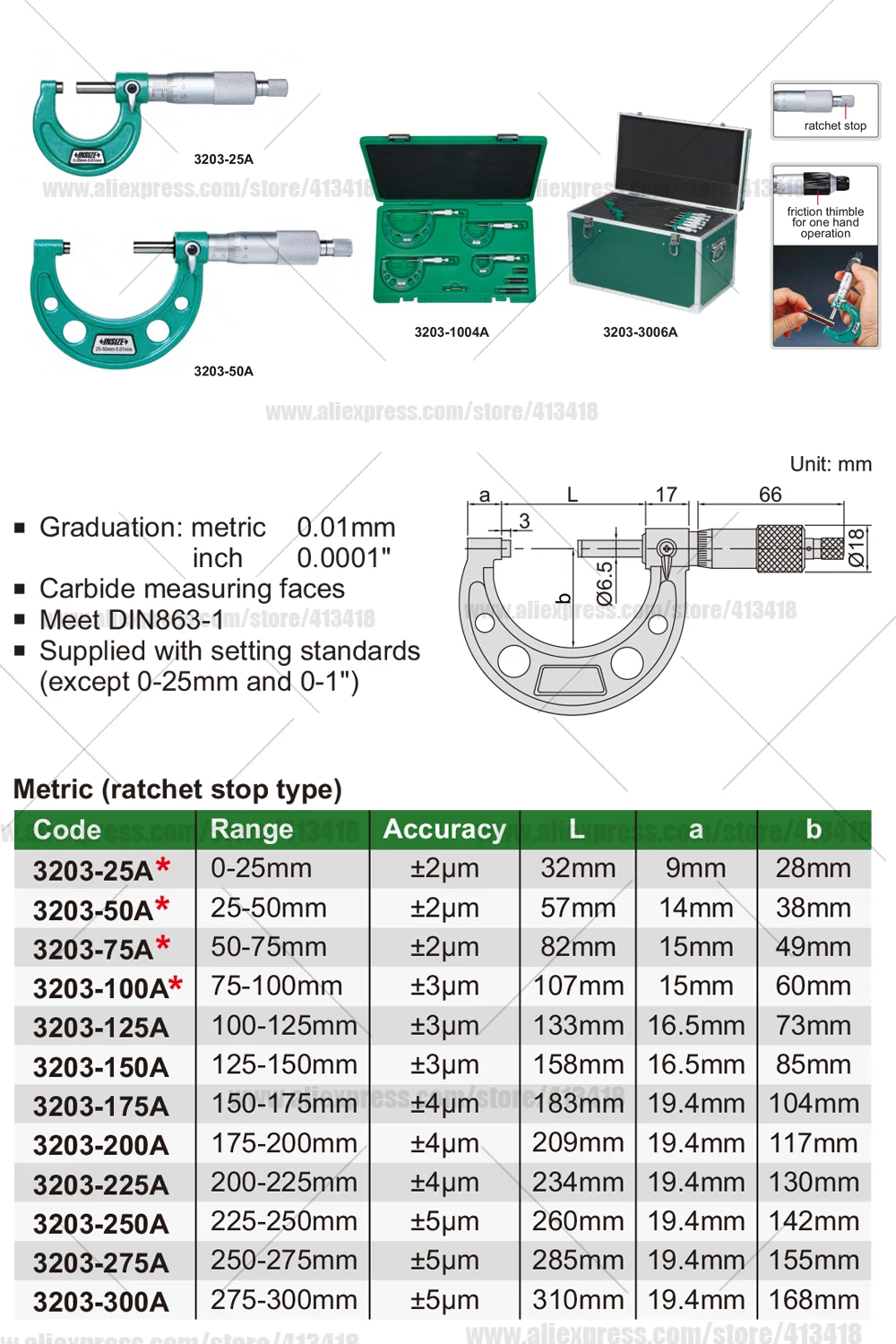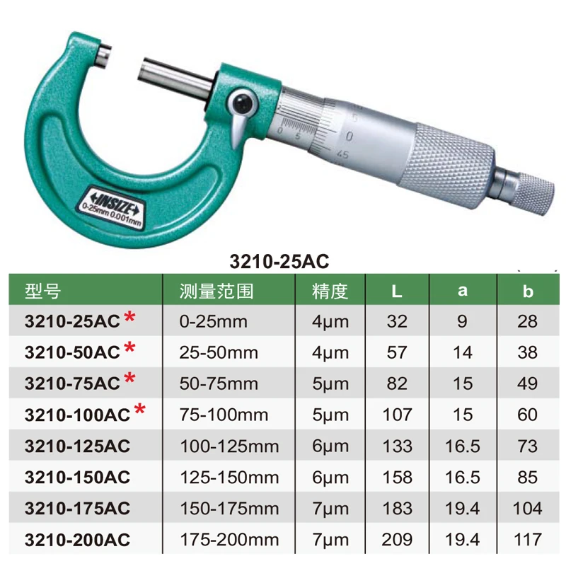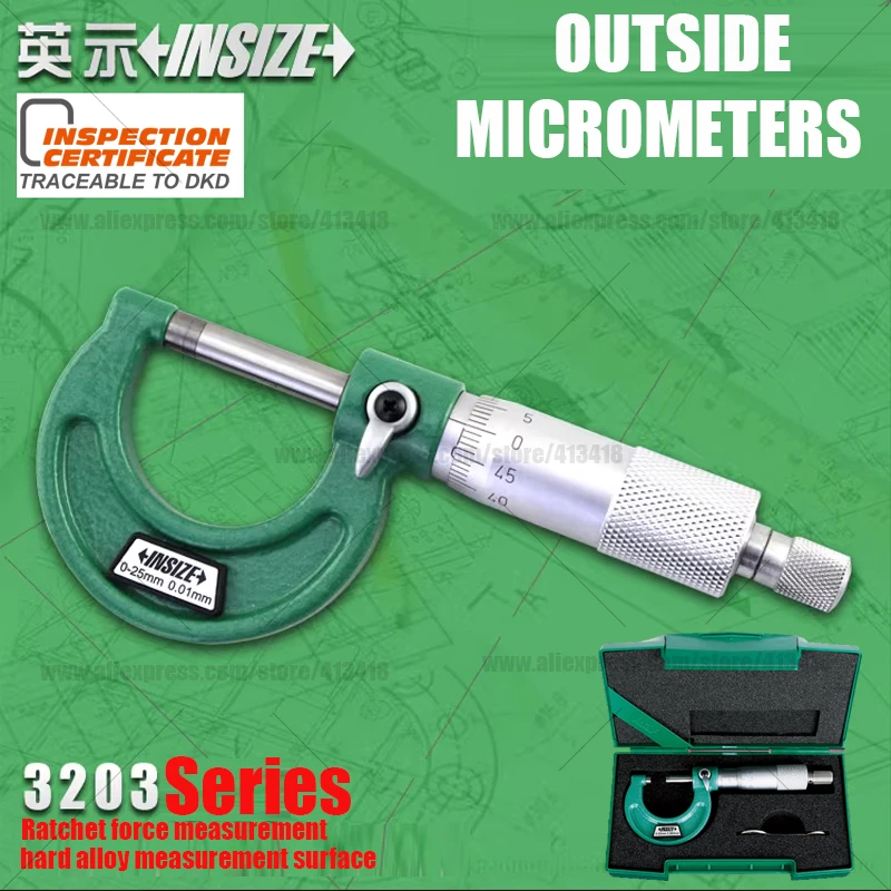 Seja o primeiro a avaliar “Insize fora micrômetros graduação 0.01mm0-25/25-50/50-75/75-100mm instrumento de medição ferramentas de medição verde”