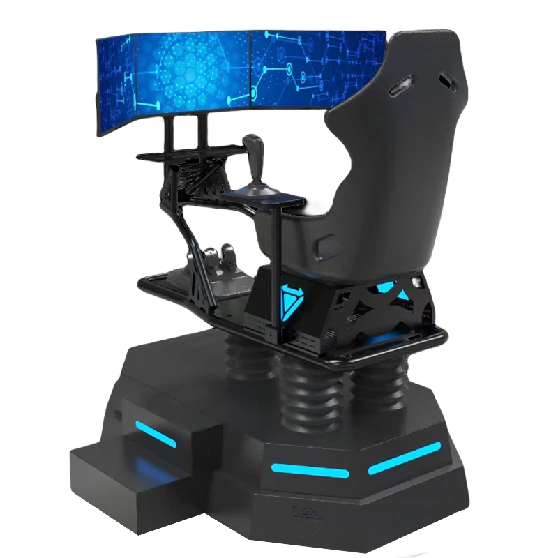 A corrida de três eixos e três telas é um simulador de corrida altamente envolvente que usa três monitores e três plataformas esportivas para