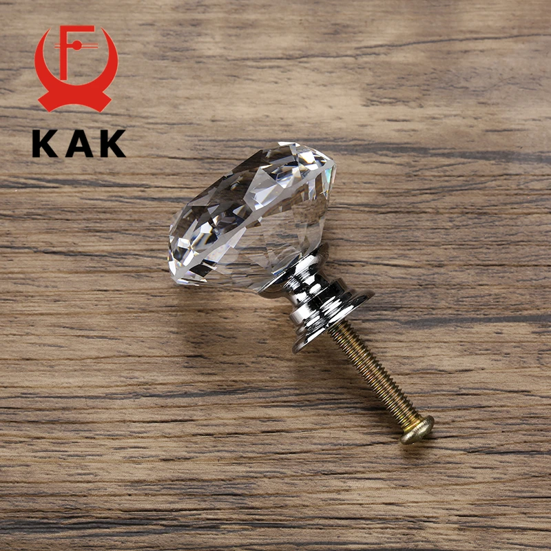 Kak 20-40mm forma de diamante design botões de vidro cristal armário gaveta puxar armário de cozinha porta guarda-roupa alças ferragem