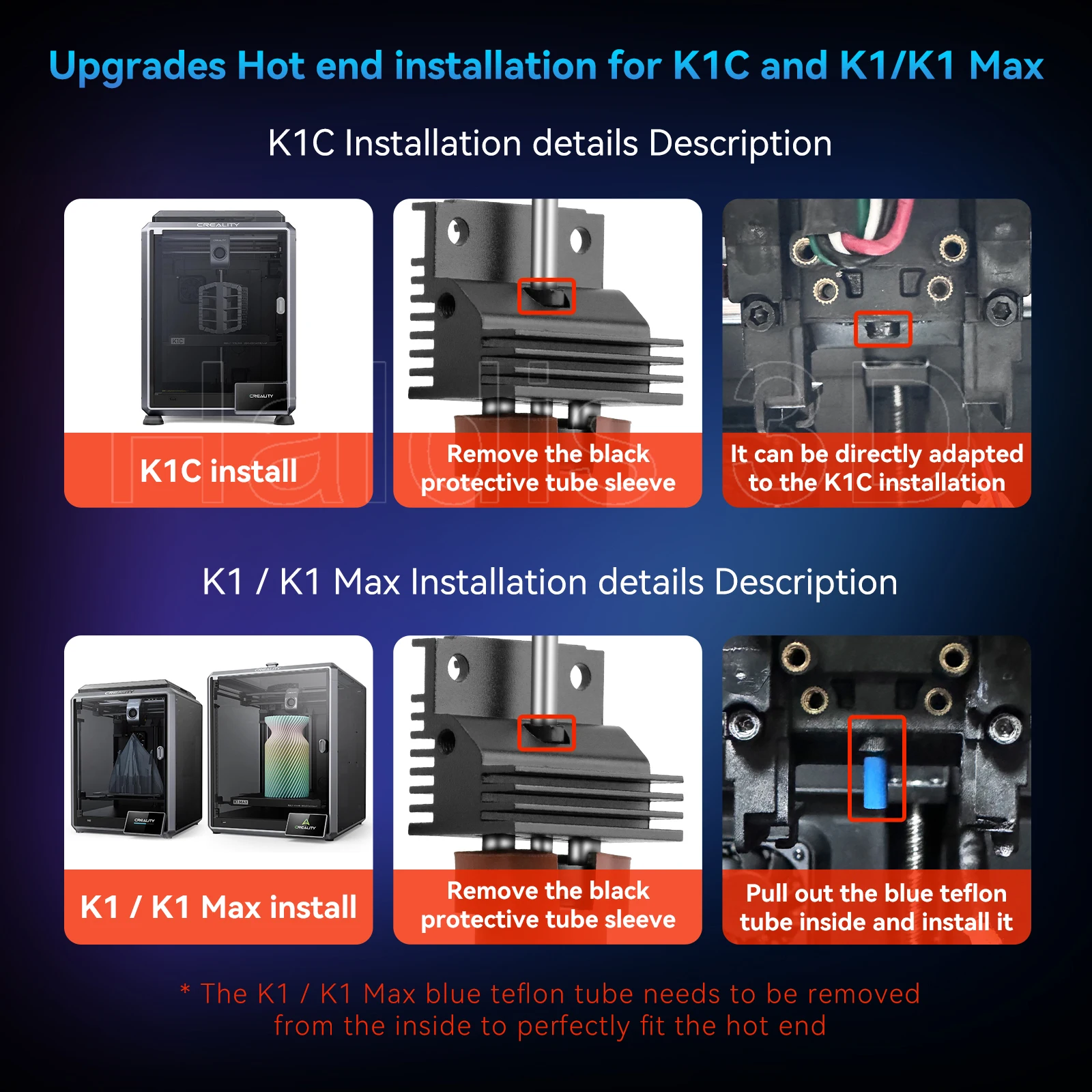 Kit hotend de atualização para creality k1c/k1 max, troca rápida, bocal de uma peça, bloco de aquecimento cerâmico, impressão de alto fluxo, peças de impressora 3d