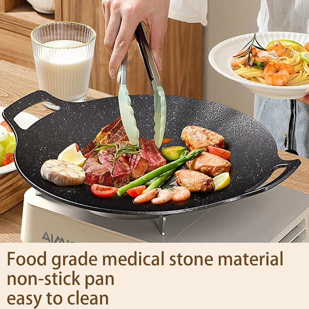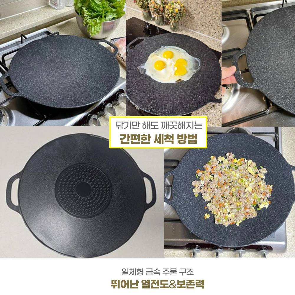 Fritura: Distribuição uniforme do calor, retém os sucos rapidamente.Perfeito para bifes, ovos, etc.– crocante por fora, macio por dentro.